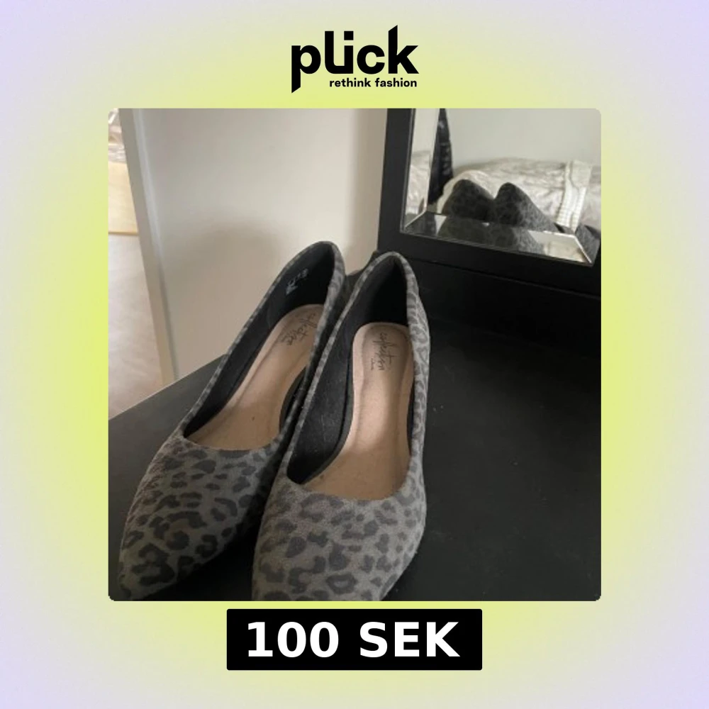 Snygga grå klackskor med leopardmönster. Perfekta för en trendig look och bekväma att bära hela dagen.