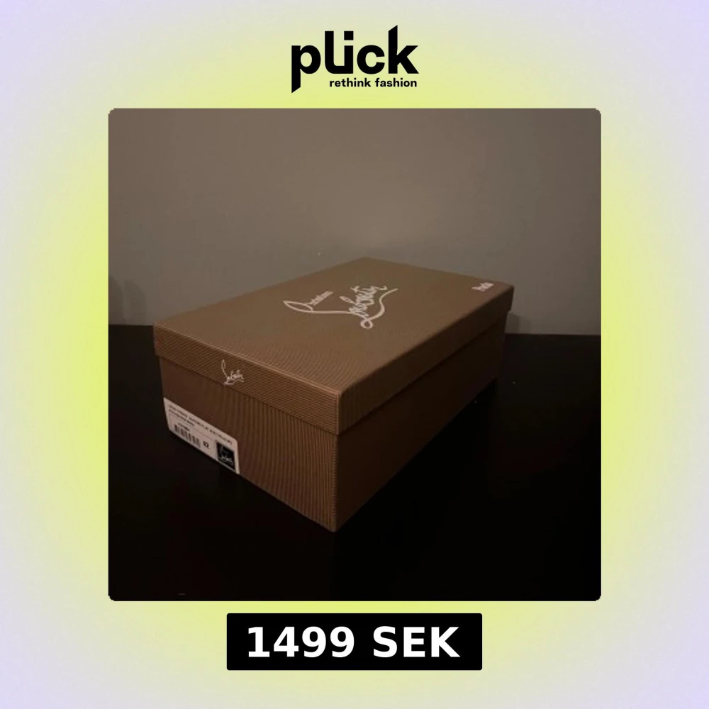 Säljer ett par grå sneakers från Christian Louboutin i mjuk mocka med klassisk röd sula och vita platta sulor. Skorna har rund tå, snörning och diskreta detaljer. Insidan är beige och ger en lyxig känsla. Perfekt för dig som gillar stilrena och exklusiva sneakers.