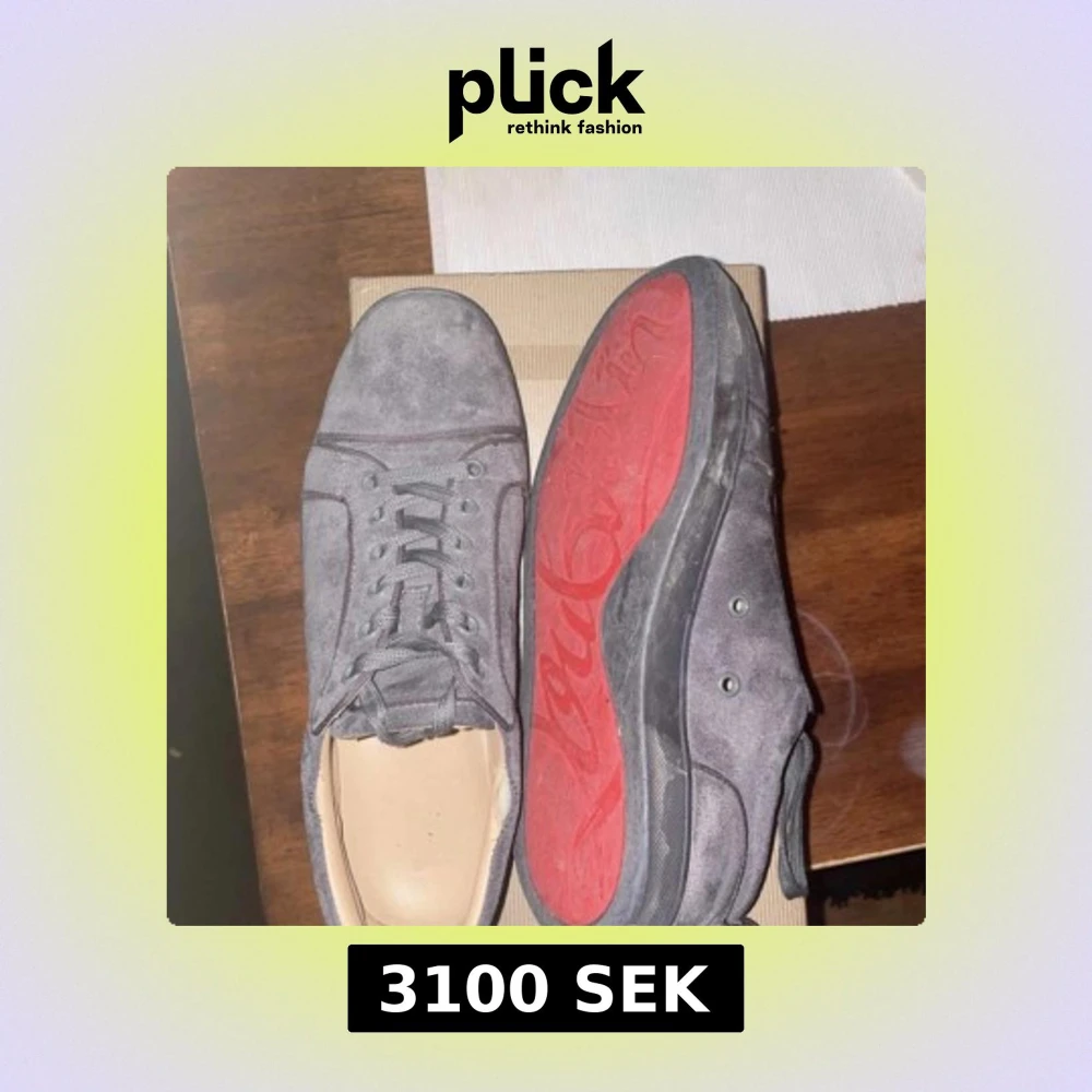 Snygga grå sneakers i mocka från Christian Louboutin med den ikoniska röda sulan. SJÄLVKLART ÄKTA. Skorna är inte tvättade, går lätt att fixa upp. Skick 7/10, små skador som inte syns vid användning. Hör av er vid frågor! (Köpta på vestiare för 5000kr) kvitto finns. Får med allt vid köp, box, dustbag, skor, kvitto.