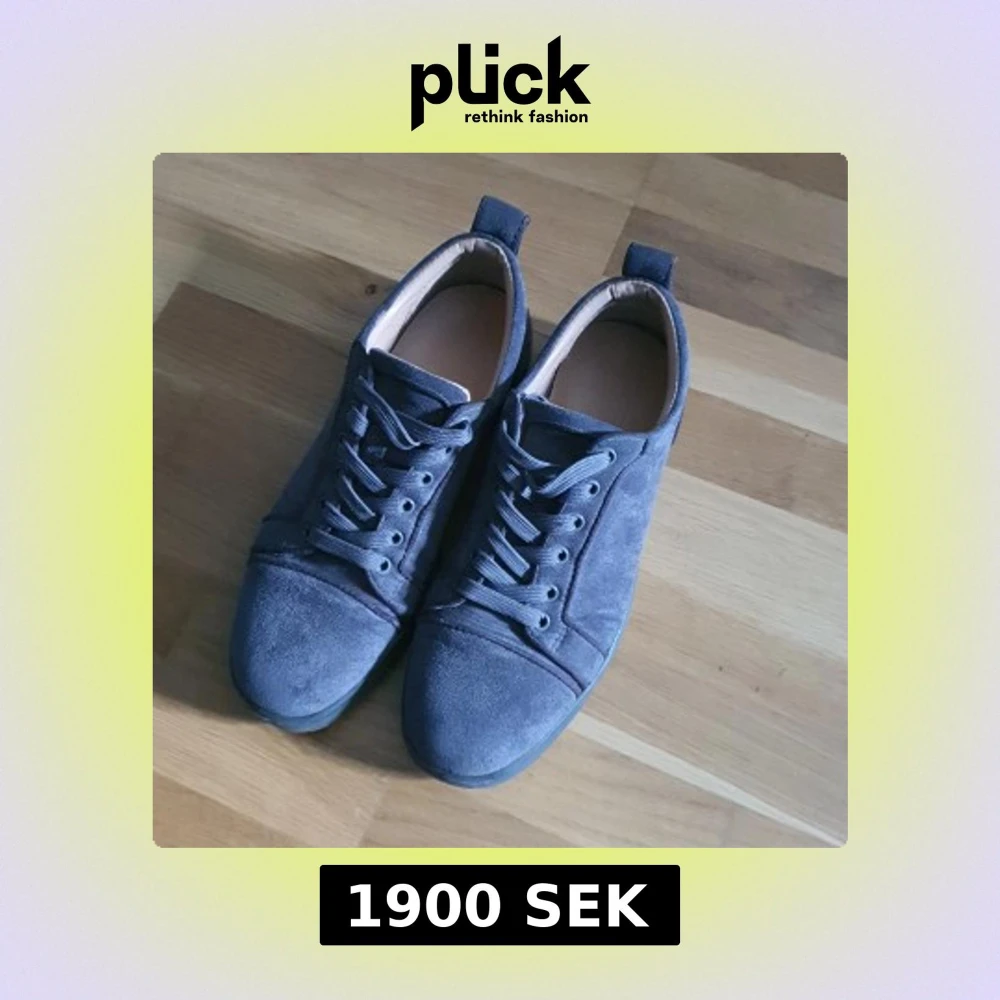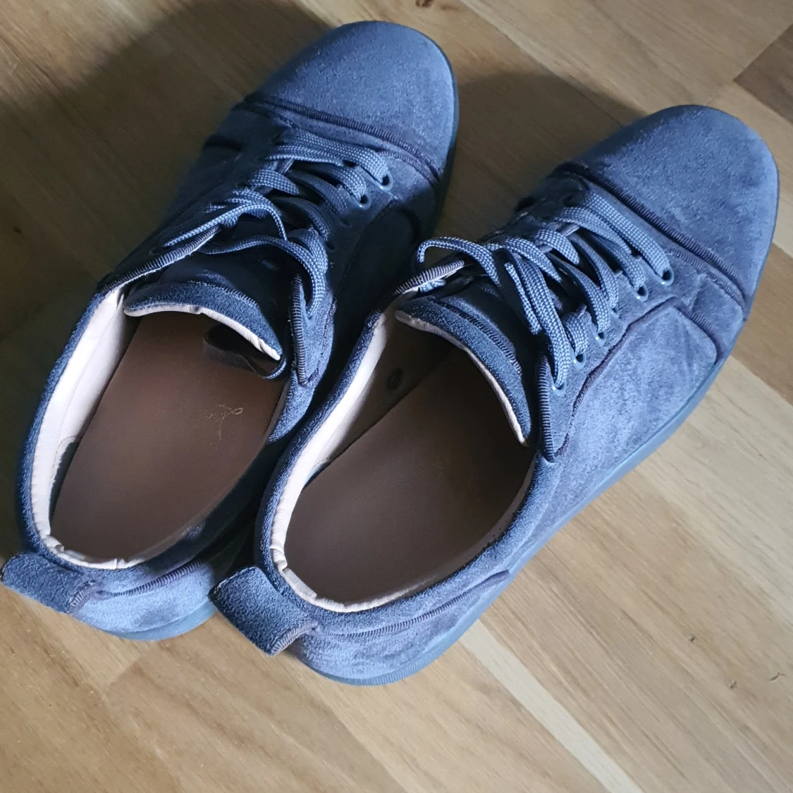 Snygga sneakers i grå mocka från Christian Louboutin med klassisk röd sula och rund tå. Skorna har snörning och diskreta detaljer, perfekt för dig som gillar stilrena och exklusiva sneakers med en twist.