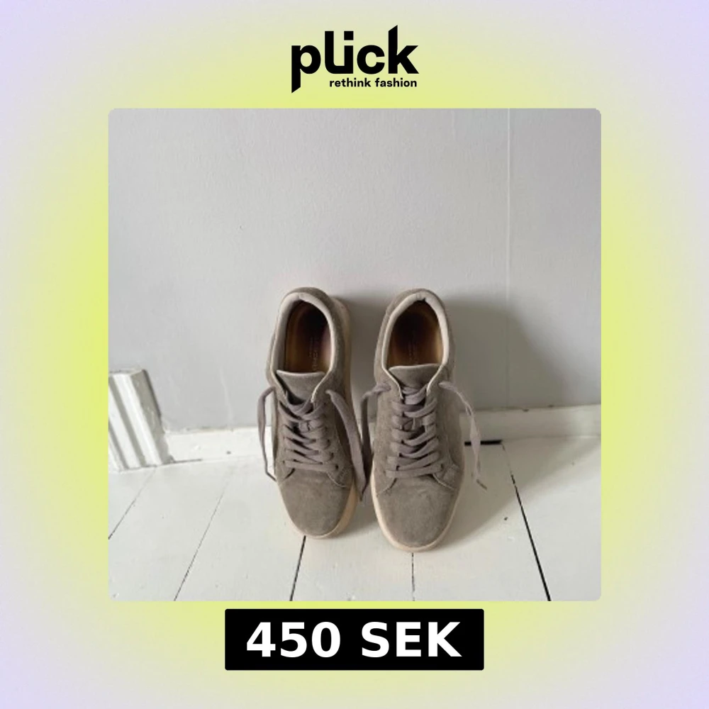 Snygga grå sneakers från Vagabond i mocka med klassisk rund tå och platt sula.
