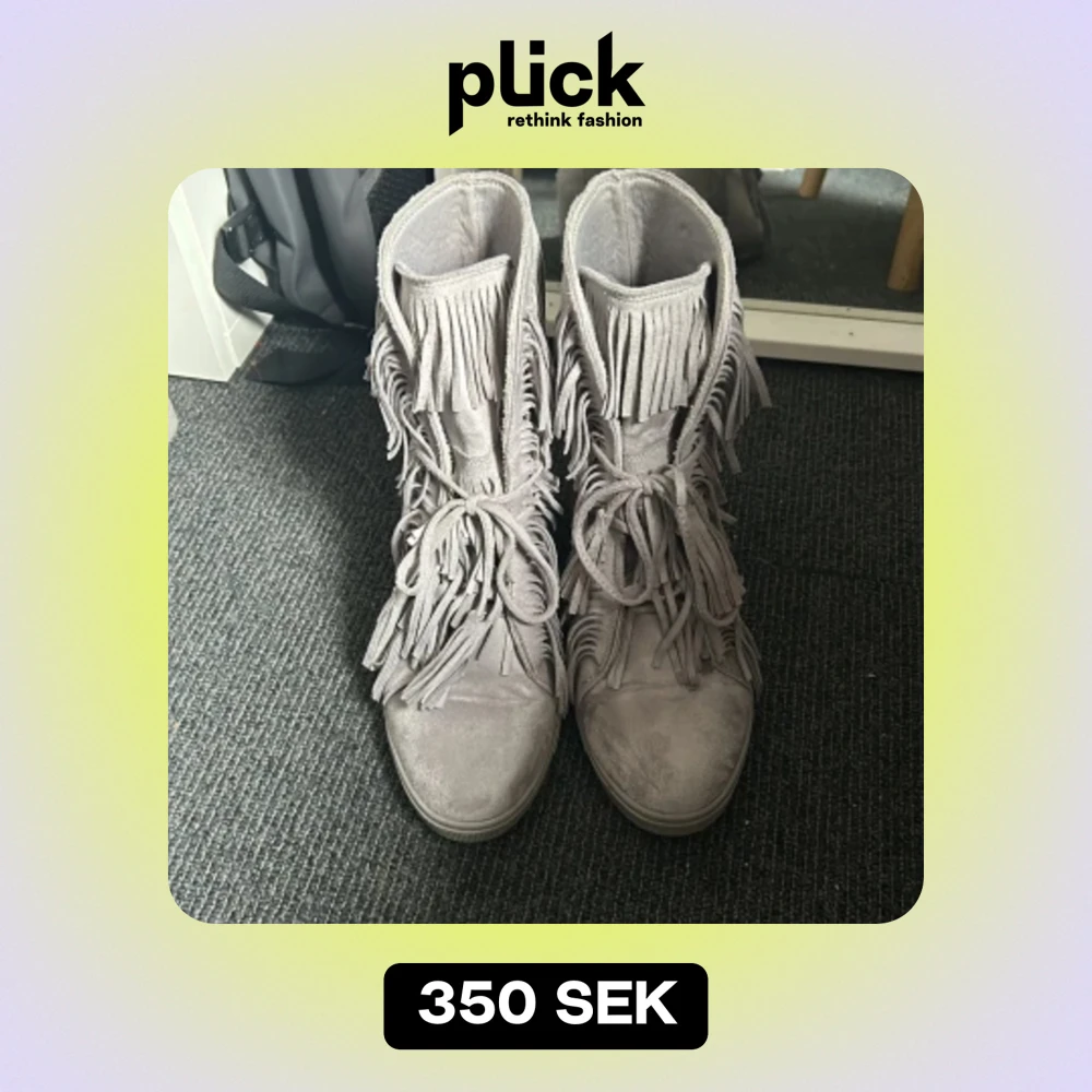 Säljer dessa super fina skor med fransar så jag har två par likadana. Lite klack på dem och bra skick endast smutsiga under, tvättas innan jag postar. 💕skriv för mer bilder!