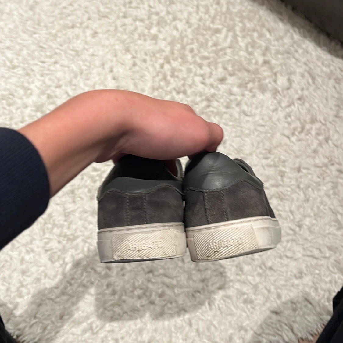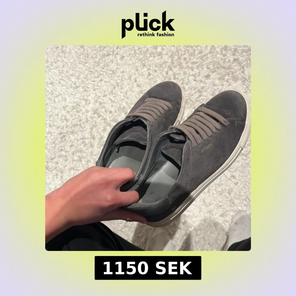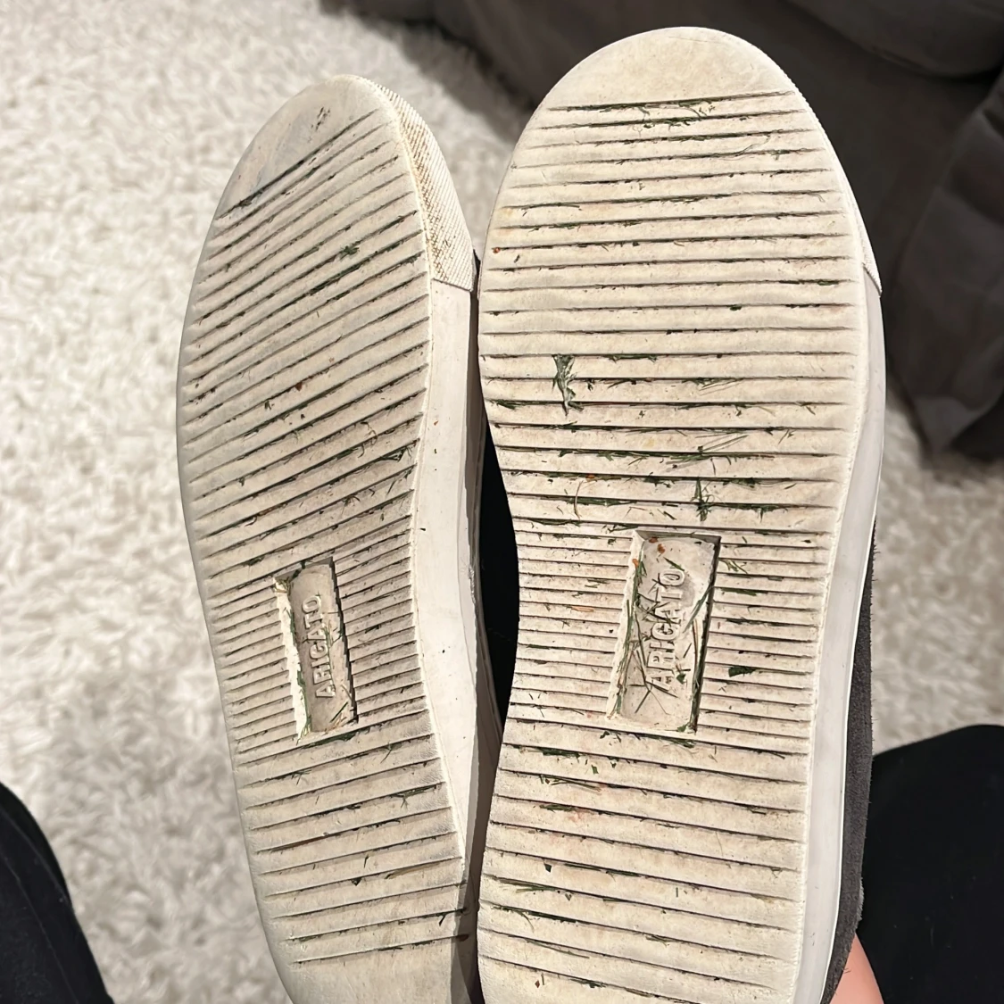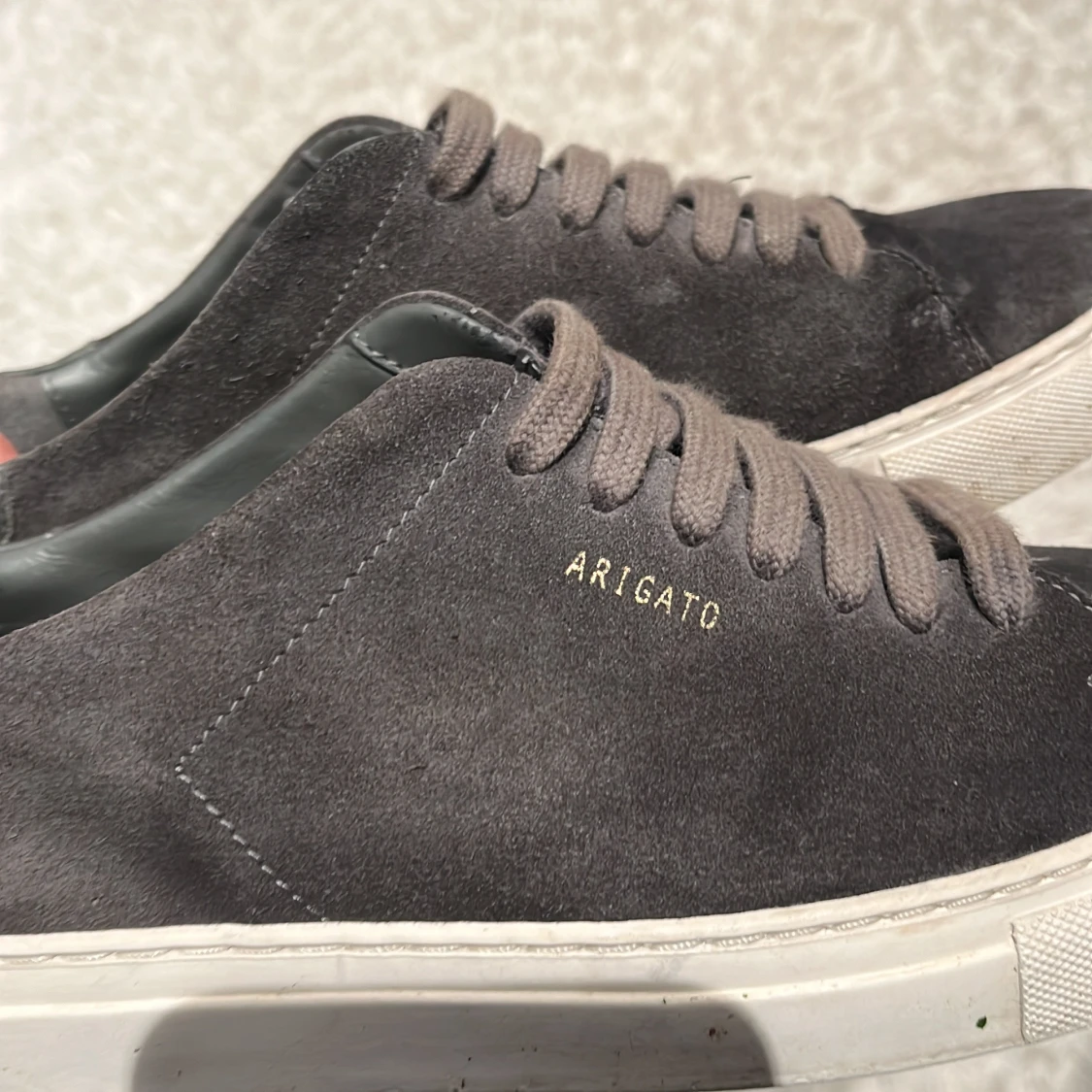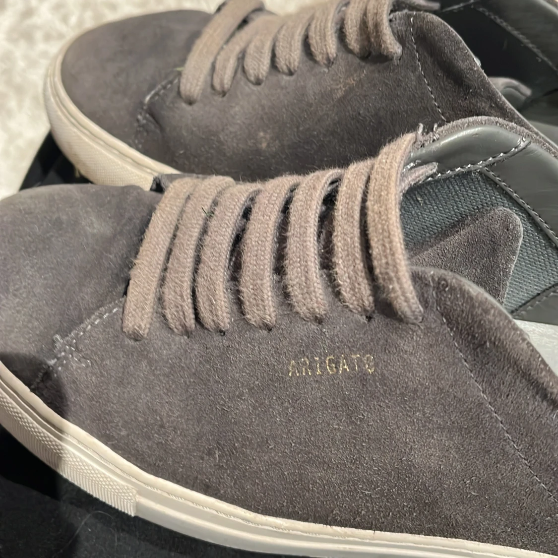 Snygga grå sneakers från Axel Arigato i mocka med vita sulor och matchande grå snörning. Skorna har diskret guldfärgad logga på sidan och detaljer i läder vid hälen. Perfekta för en clean och stilren look.
