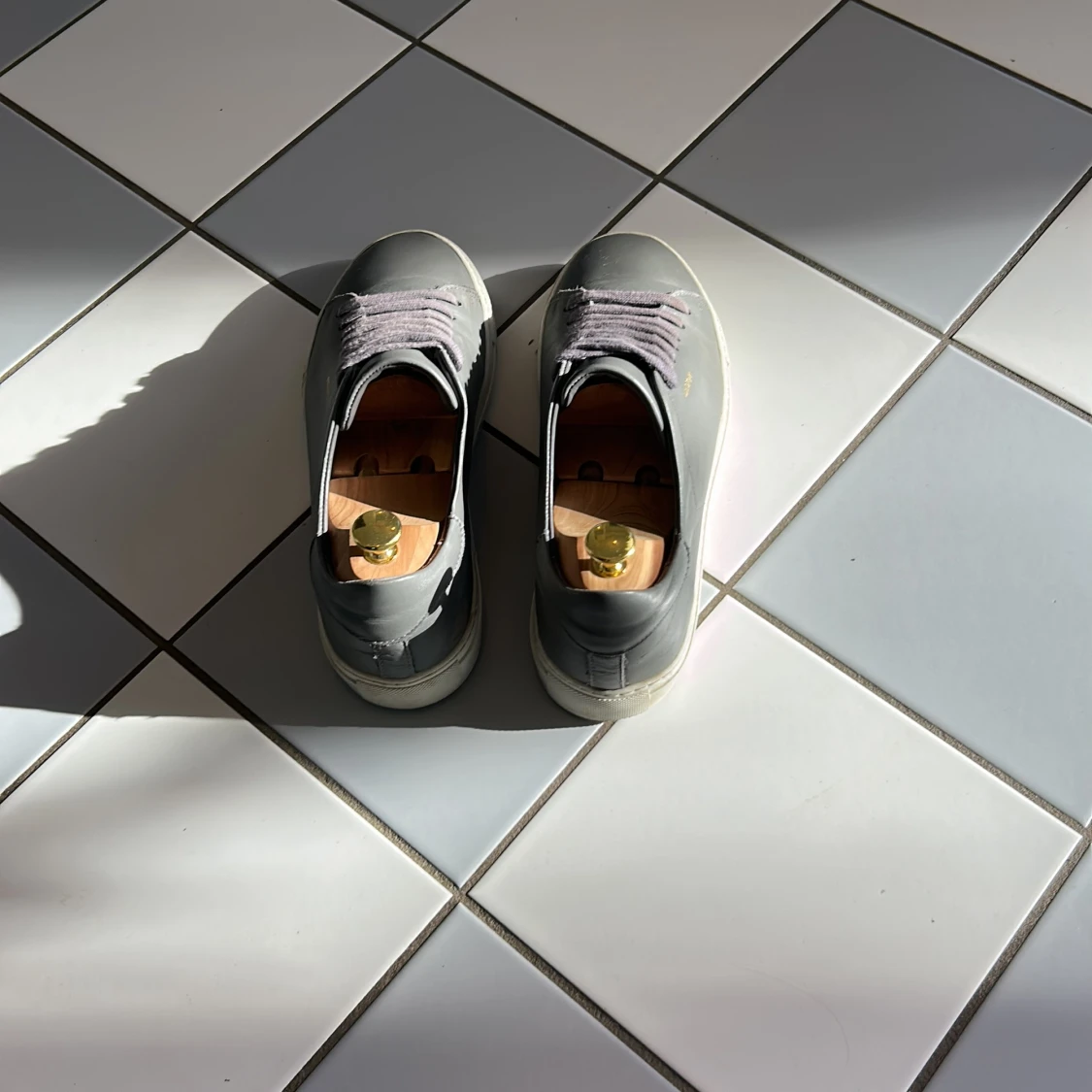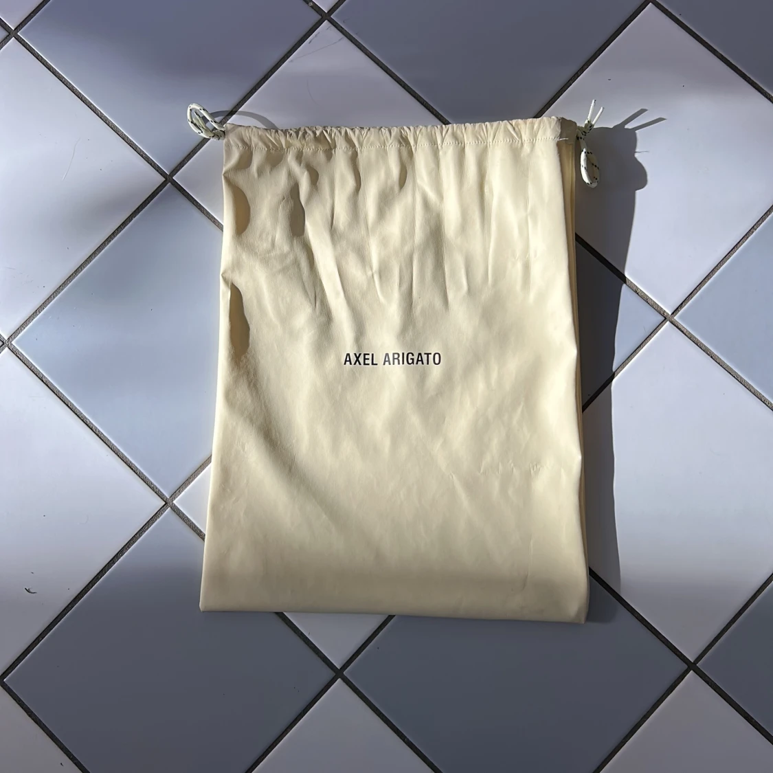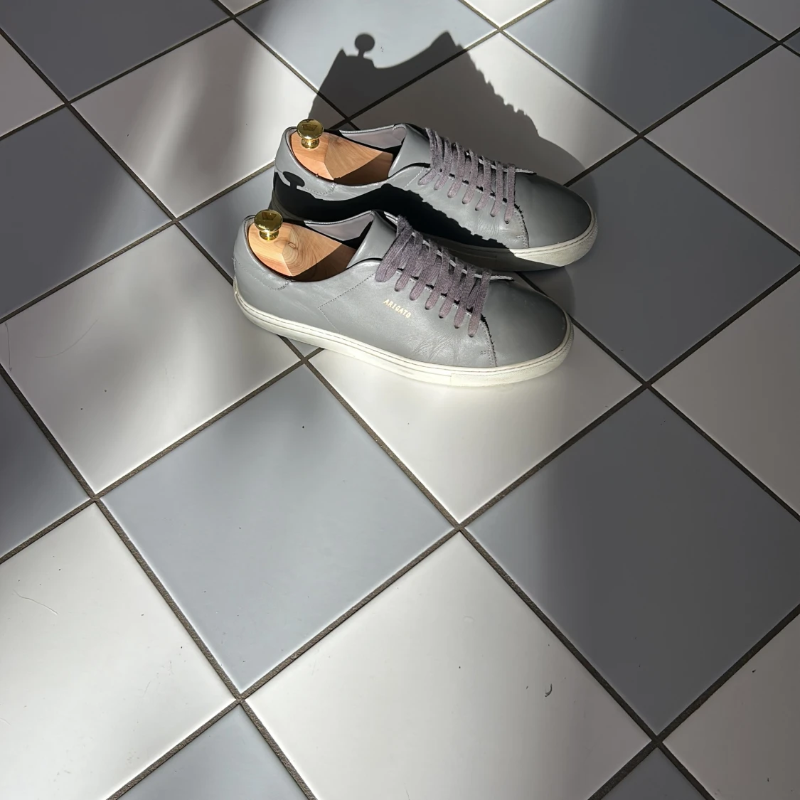 Snygga grå sneakers från Axel Arigato i skinn med vita sulor och matchande grå snörning. Stilren design med diskret guldfärgad logga på sidan. Skorna har rund tå och platt sula, perfekta för en clean och modern look. Medföljer original dustbag.