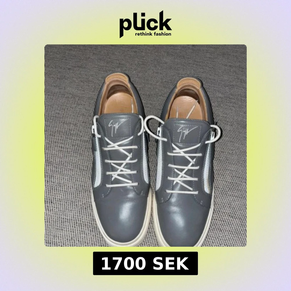 Snygga grå sneakers från Giuseppe Zanotti i skinn med vita detaljer och snörning. Skorna har en vit sula och signaturlogga på plösen. Perfekta för dig som vill ha en clean och stilren look med exklusiv känsla.