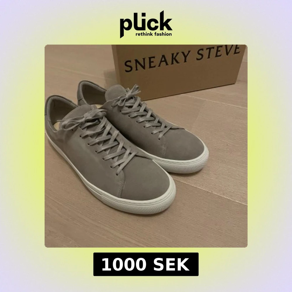 Snygga grå sneakers från Sneaky Steve i mocka med klassisk snörning. Skorna är sprillans nya, har aldrig använt dom ute bara inne. Skorna är storlek 46. Perfekta sommar skor.