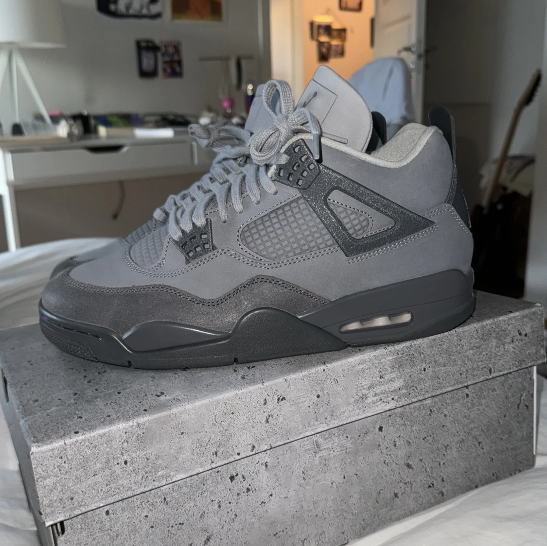Ett par wet cement SE sneakers Jordan 4 från Nike helt nya. Skorna har en kombination av olika grå nyanser och är tillverkade i ett slitstarkt material. Priset kan diskuteras men inga skam bud mvh.