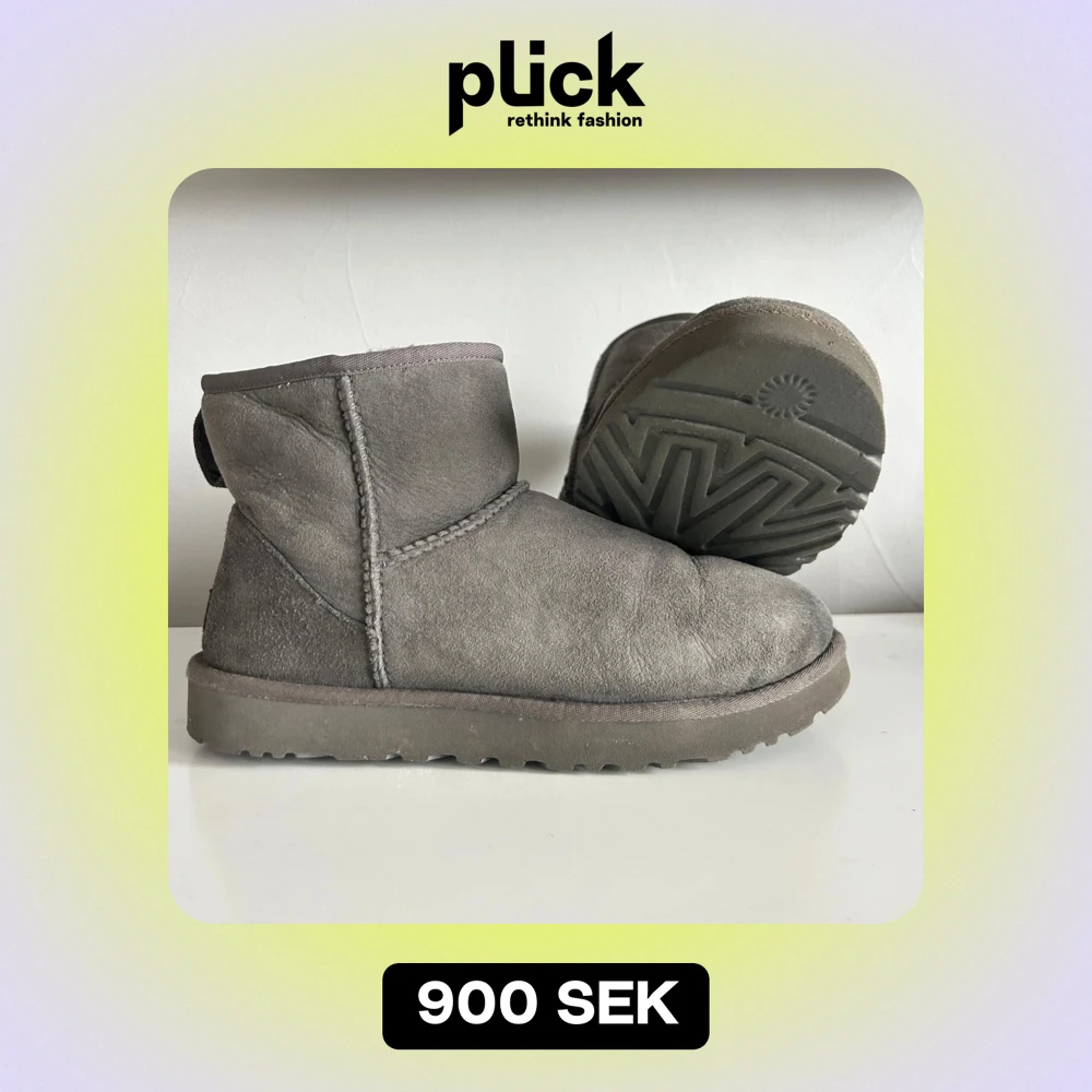 Säljer ett par grå UGG boots i mjuk mocka. De är supervarma och perfekta för vintern med sin fluffiga insida. Sulan är robust och ger bra grepp. De är i mycket bra skick och redo för kalla dagar. Perfekta för att hålla fötterna varma och mysiga!