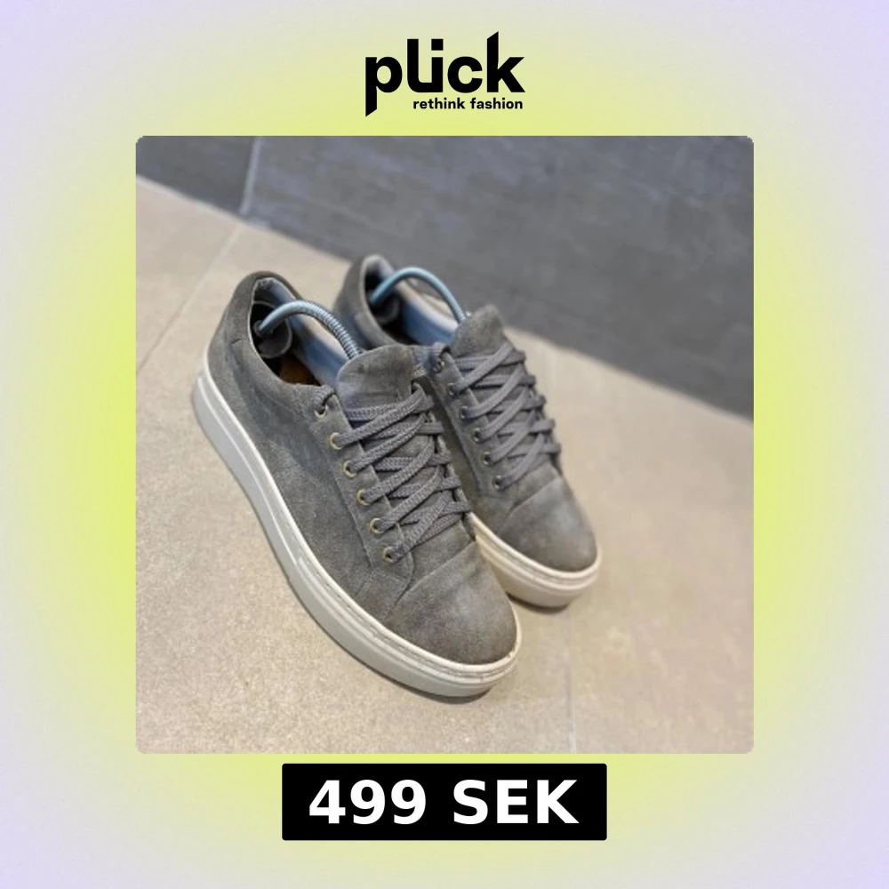 Snygga grå vagabonds sneakers i mocka med vit sula och snörning. Perfekta för en stilren look med en touch av elegans. De har en klassisk design med rund tå och diskreta detaljer.