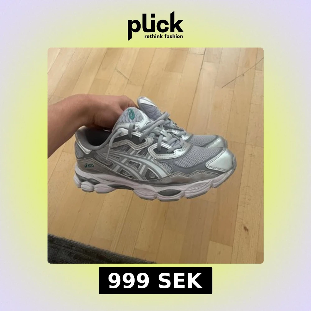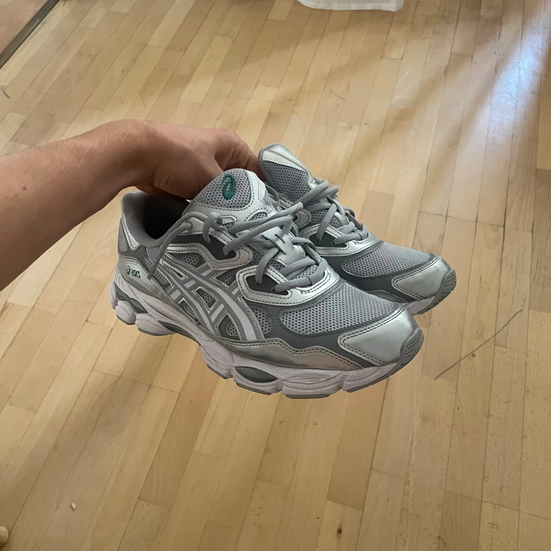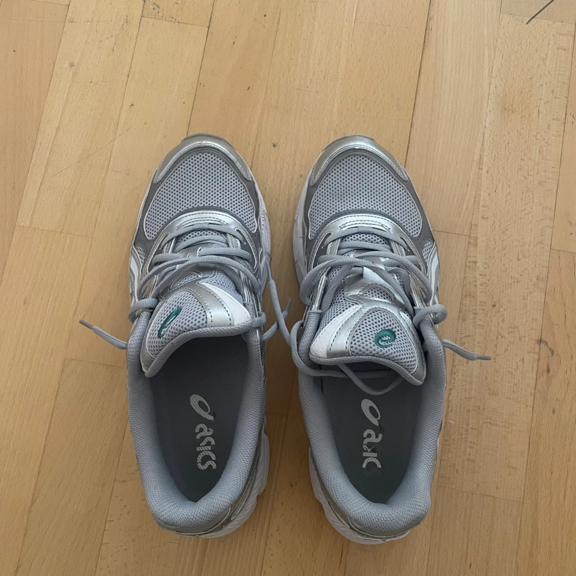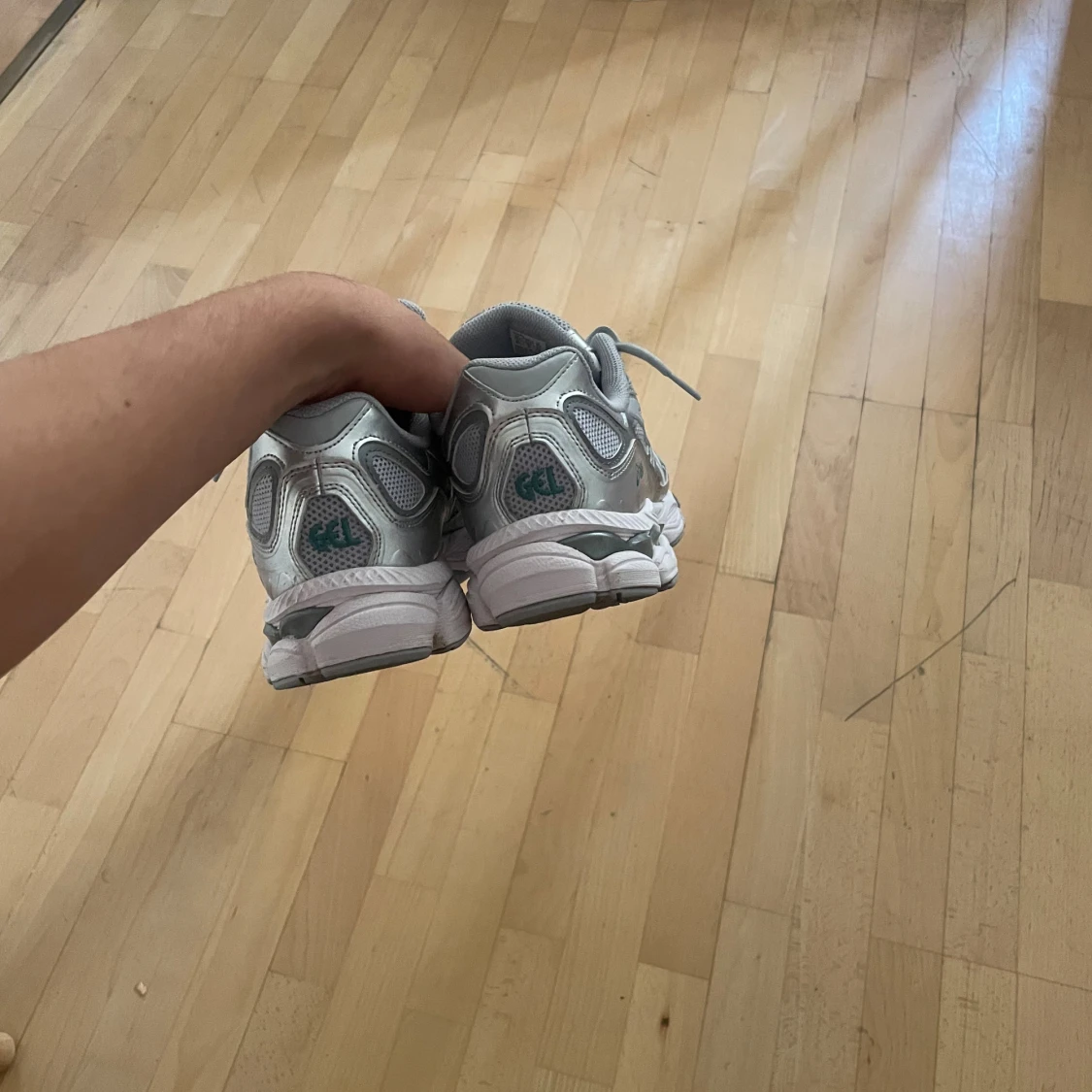 Säljer ett par snygga Asics sneakers i silver och grått med vit sula. Väldigt lite använda, Mycket fint skick
