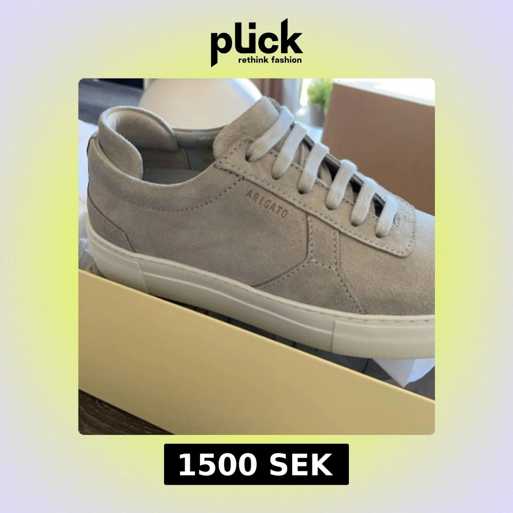 Snygga gråa sneakers från Axel Arigato i mocka med vita snören och vit sula. Perfekta för en stilren och modern look. Diskret logga på sidan och klassisk låg modell. Dessa är sparsamt använda och inga skador