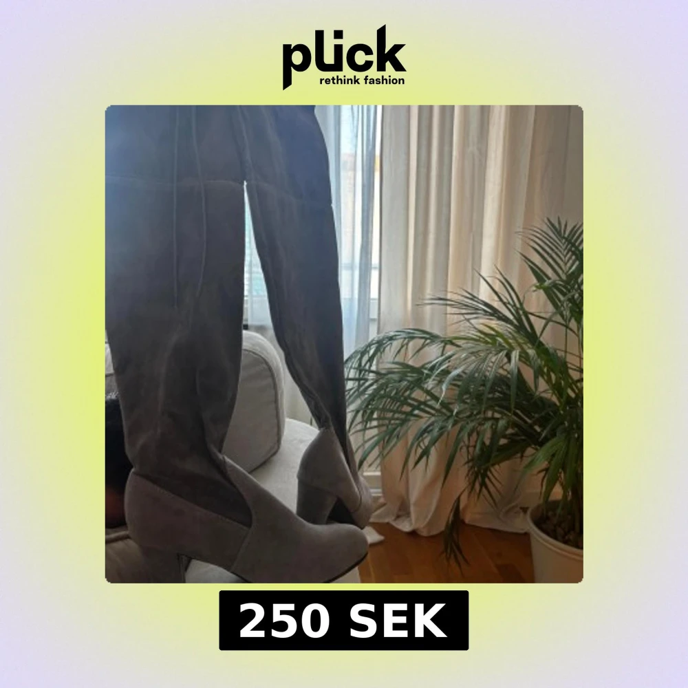 Snygga gråa overknee-stövlar i mocka-look med bred klack och rund tå. Perfekta för att lyfta din outfit med en trendig och stilren vibe. Stövlarna har en mjuk yta och sitter tajt längs benet för en modern siluett. Dessutom aldrig använda!