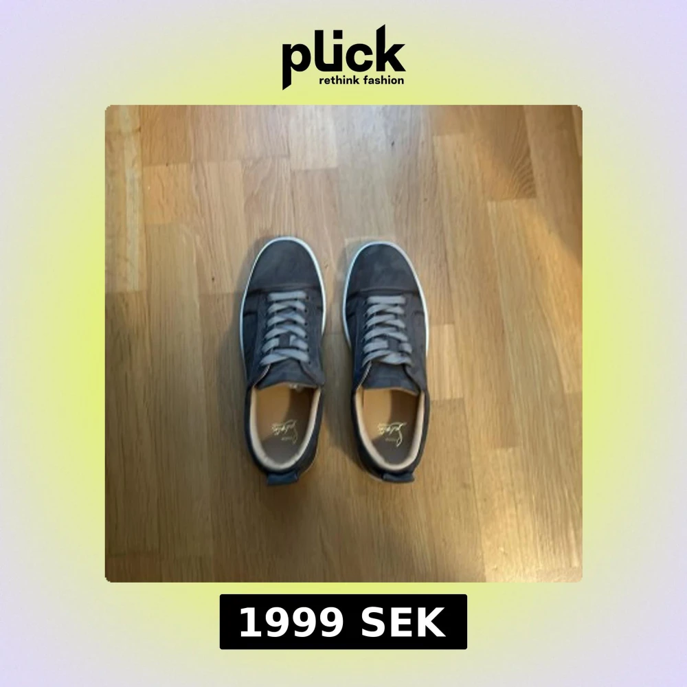 Bara serösa köpare tack!!! Säljer ett par stilrena gråa sneakers från Louboutin i mjuk mocka med klassisk vit sula och röda undersidor. Skorna har rund tå, snörning och diskreta metallhål på sidorna. Perfekta för dig som gillar en grish/laid back stil.