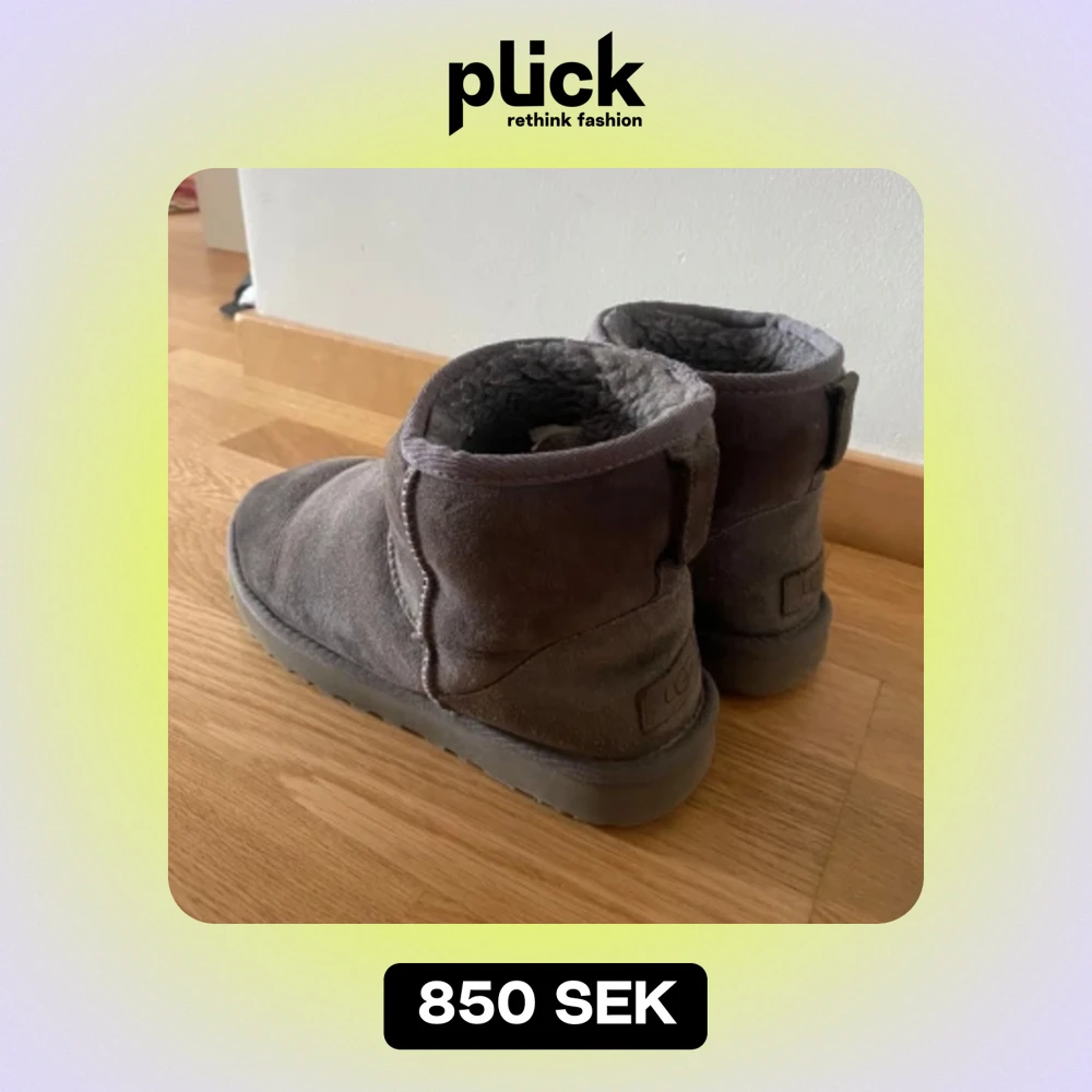 Säljer mina 2 gråa uggs, storlek 38, de är använda 2 vintrar, färgen på framsidan är lite skadad av vatten annars är det inga fel på de💕💕