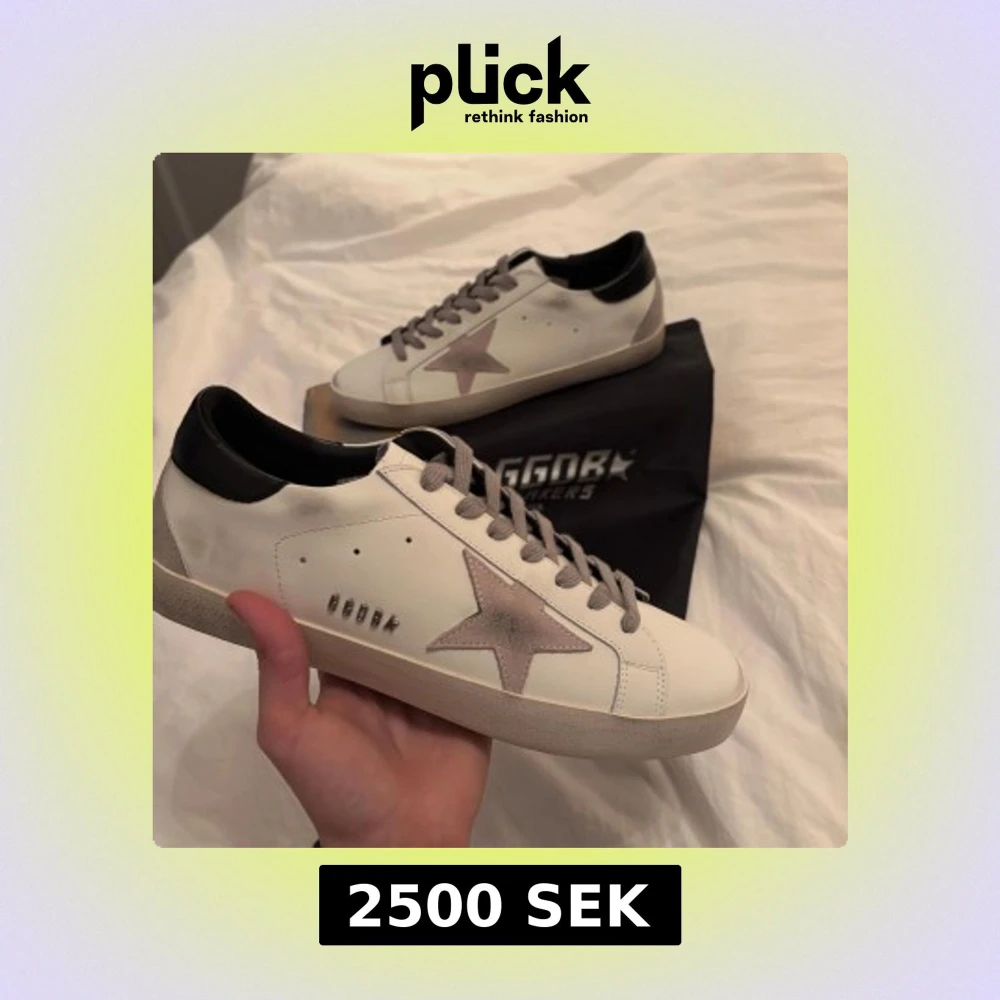 Snygga vita sneakers från GGDB med en grå stjärna på sidan och svarta detaljer vid hälen. Skorna har grå snörning och en bekväm sula med bra grepp. Perfekta för en stilren look. Skriv innan köp!