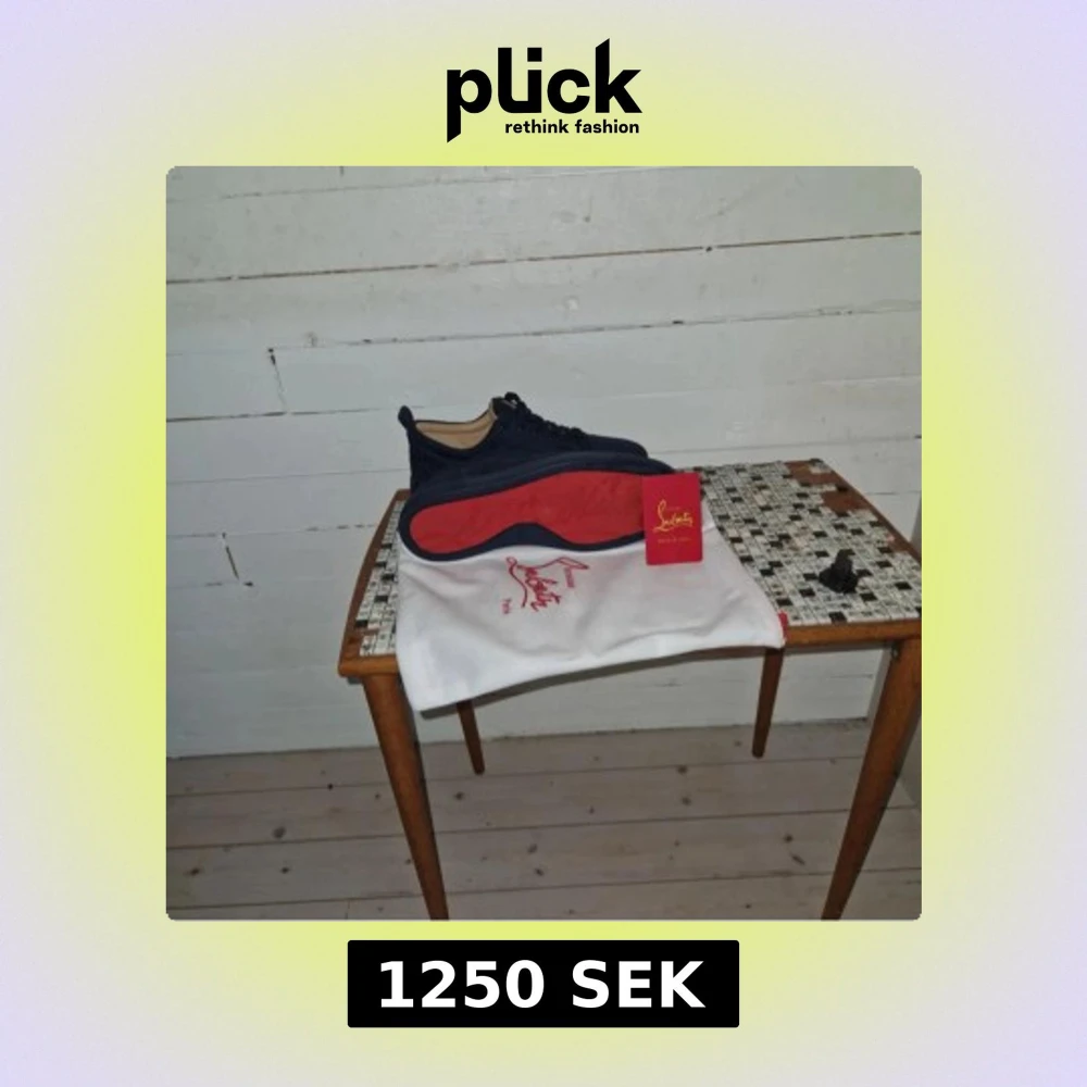 Snygga marinblå sneakers från Christian Louboutin med den ikoniska röda sulan. Skorna har snörning och är tillverkade i mocka med läderdetaljer. Perfekta för dig som vill sticka ut med exklusiv stil och klassiska detaljer.