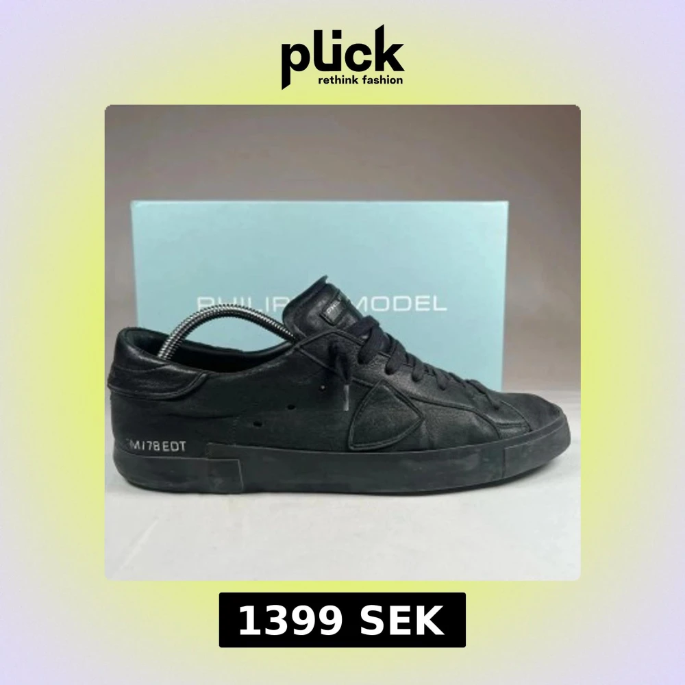 Snygga svarta sneakers från Philippe Model i skinn. Skorna har en rund tå och klassisk snörning. Perfekta för en stilren look.PHILIPPE MODEL TRPZ SALE PRICE 1499 KR nypris 2999kr Size 44 IT fit for 45 EU The shoes are delivered with the original box and without the dust bag 100% äktighets varifierad av experter 💯🍾
