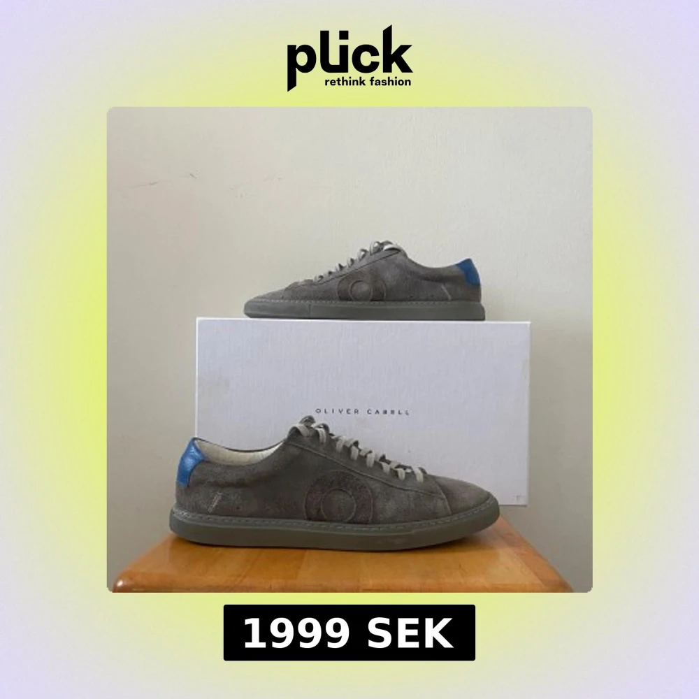 Snygga grå sneakers från Oliver Cabell med blå detalj på hälen. Skorna har en stilren design med snörning och är tillverkade i mocka. Perfekta för våren och sommaren. Storleken är 40-41. De är precis som nya och knappt använda.
