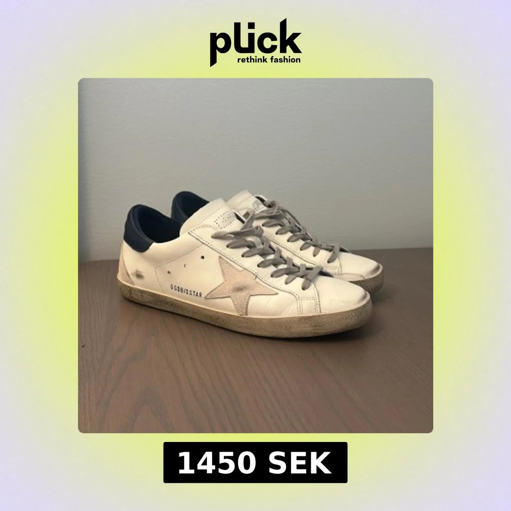 Hej! Jag säljer ett par Golden Goose sneakers med blå häl i storlek 41. Skorna är lite använda men i bra skick. Tveka inte att höra av dig om du har några frågor eller vill ha fler bilder.