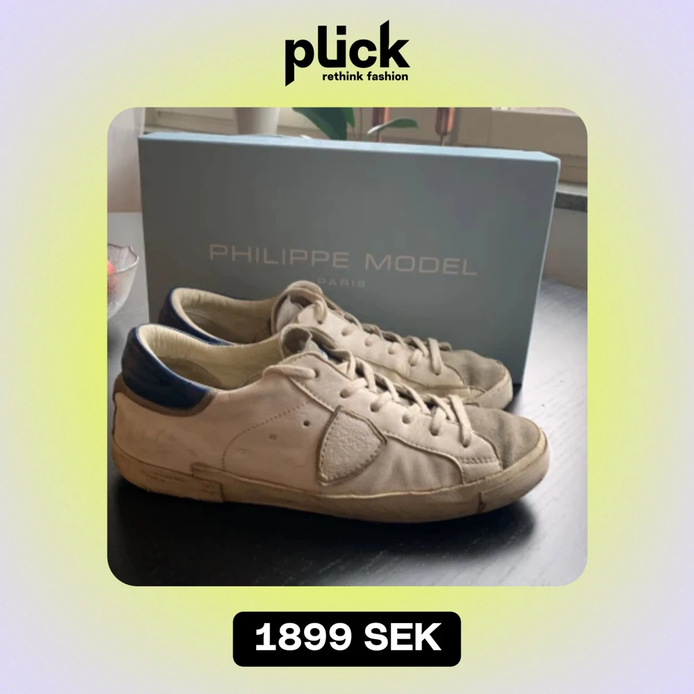 Tja säljer ett par eftertraktade Philip model skor i storlek 40-41 i färgen blå vit! Dom är i ett använt skick men dom går att tvätta! :Nypris 3400kr mitt pris 1600kr! Byten funkar mot lanvins🚨 Priset är inte fast hugget i sten🚨