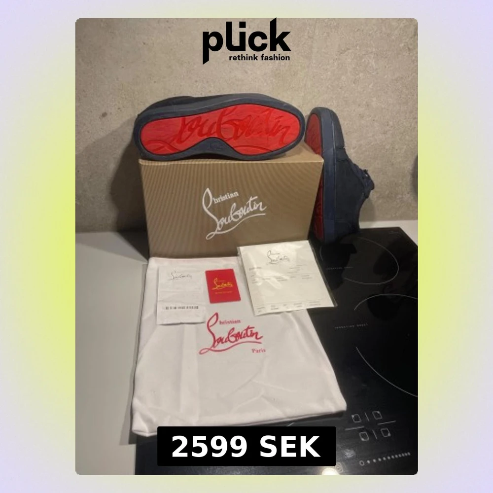 Ett par stilrena Christian Louboutin i färgen mörkblå har använts en vinter. köpt för 6800 kr ny. den har den ikoniska röda sulan och den stilrenalooken som liknar kostym skor. Man får med lådan, kvitto, en påse och det röda Christian Louboutin kortet. 😁 det är bara och skriva om ni undrar något eller vill ha fler bilder. 🤝👞