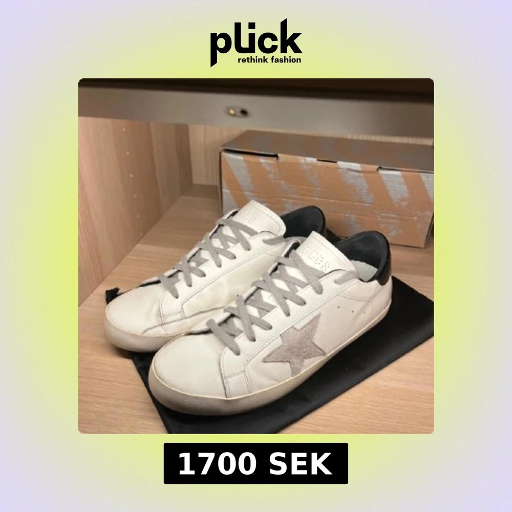 Golden Goose sneakers i vitt skinn med grå mockastjärna på sidan och grå snörning. Skon har svart hälparti och rund tå, samt platt sula i gummi. Klassisk och clean design med perforerade detaljer på plösen. Perfekt för dig som gillar streetstyle.