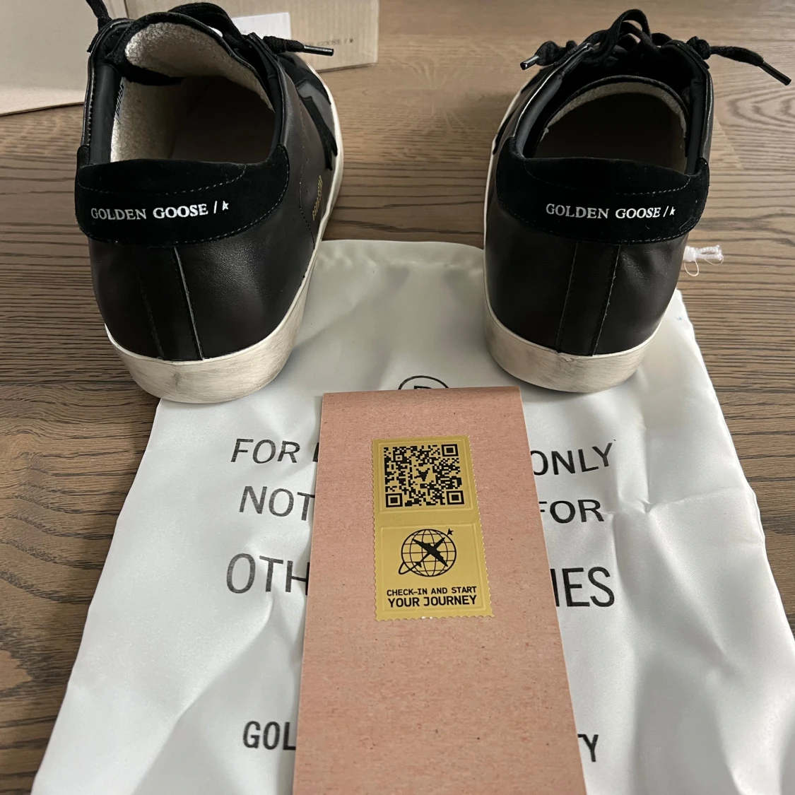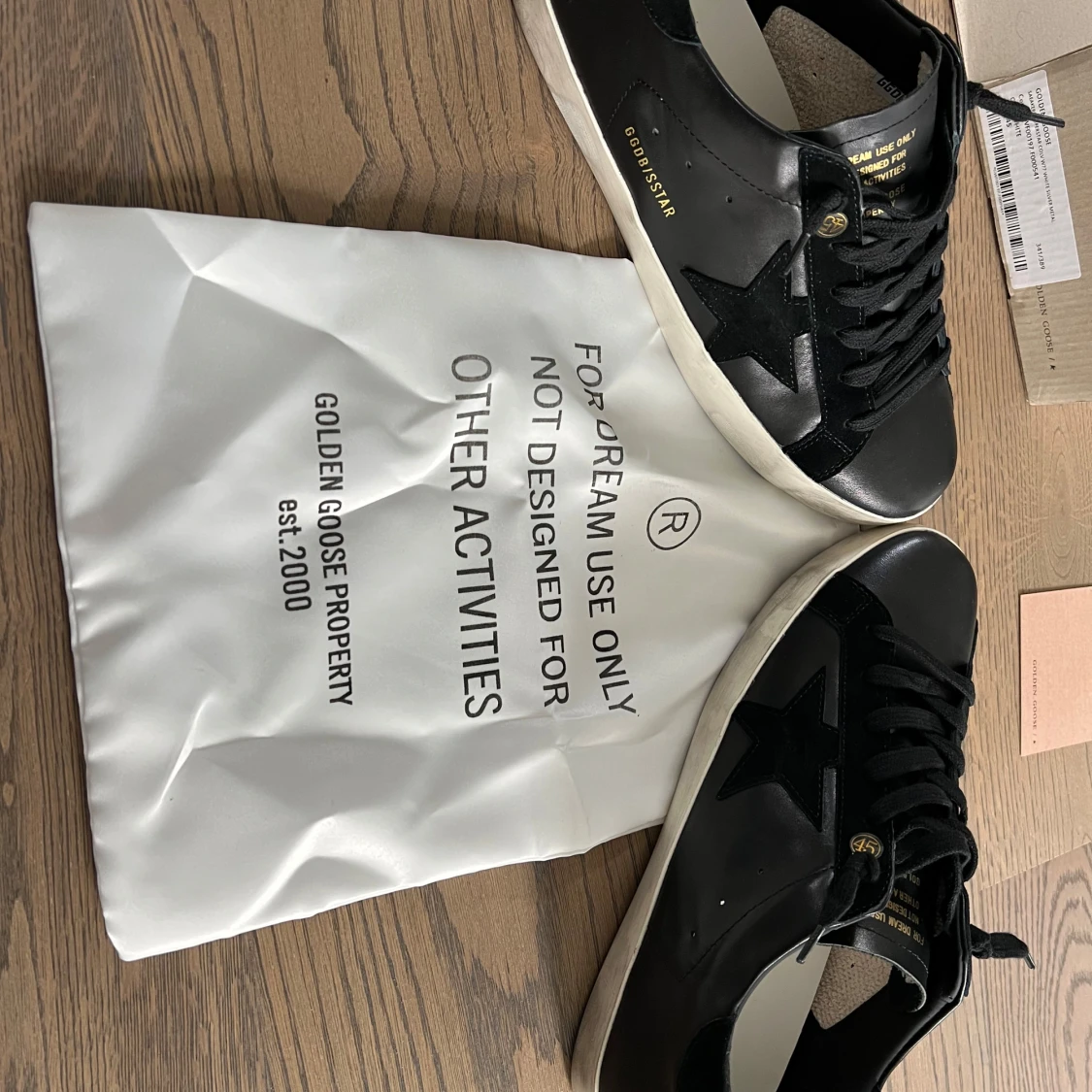 Snygga svarta sneakers från Golden Goose med en stjärndetalj på sidan. Skorna har en klassisk design med snörning och en vit sula. Perfekta för en stilren look. Pris kan diskuteras vid snabbaffär