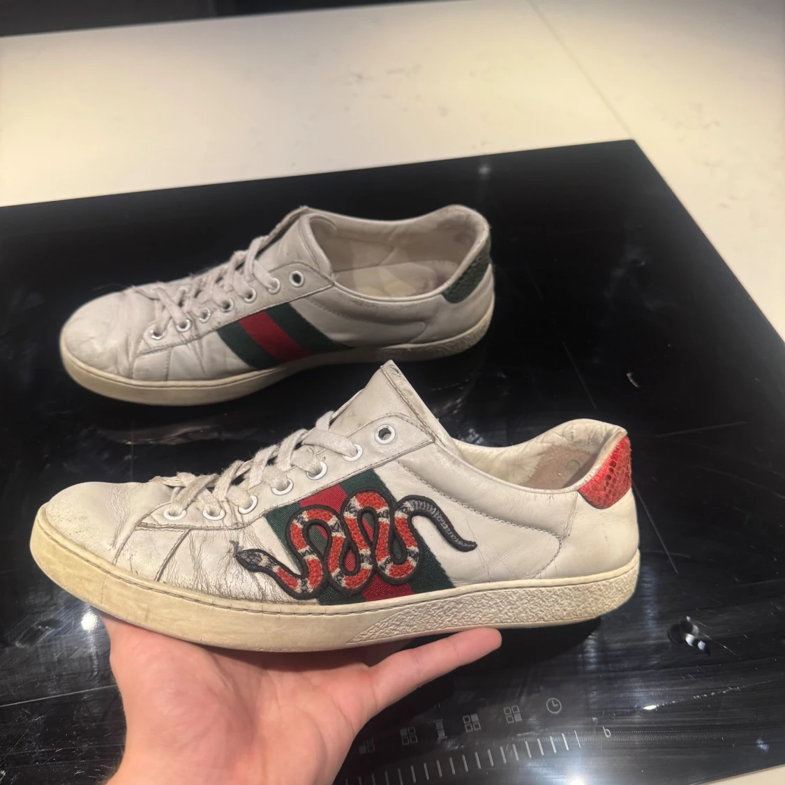 Säljer nu dessa as feta gucci ace snake! Skorna är i helt okej skick har använts under en längre period men är fortfarande riktigt snygga! 😁// bara skorna följer med //