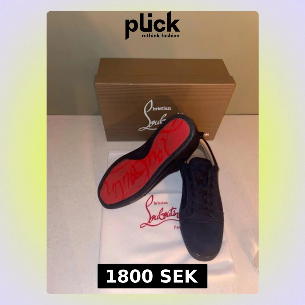 BILLIGARE VID SNABB AFFÄR. Snygga mörkblå sneakers från Christian Louboutin i mocka med klassisk röd sula och rund tå. Skorna har svarta snören och en stilren design som ger en lyxig känsla. Perfekta för dig som vill sticka ut med exklusiva detaljer. Skorna är använda fåtal gånger och finns inga märkvärdiga problem. HÖR AV DIG VID MINSTA LILLA FUNDERING😁 Dustbag låda och alla tillbehör följer såklart med 😀