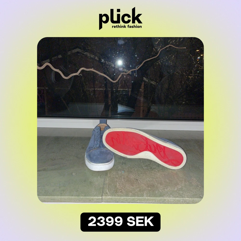Säljer ett par snygga blåa Louboutins! De är skitsnygga till skolan eller att ha på fester🥳 De är bara använda i 2 månader men det finns lite slitage på ena skosnöret och så finns det lite scuffmarks som du ser på tredje bilden. Skorna är något slitna på sulan men inget man riktigt märker när man har på sig de. Medföljer dustbag✅och box✅De har den ikoniska röda sulan som alla strävar efter!! OBS Det är endast intressekol så Köp inte!!! Kom med förslag på pris