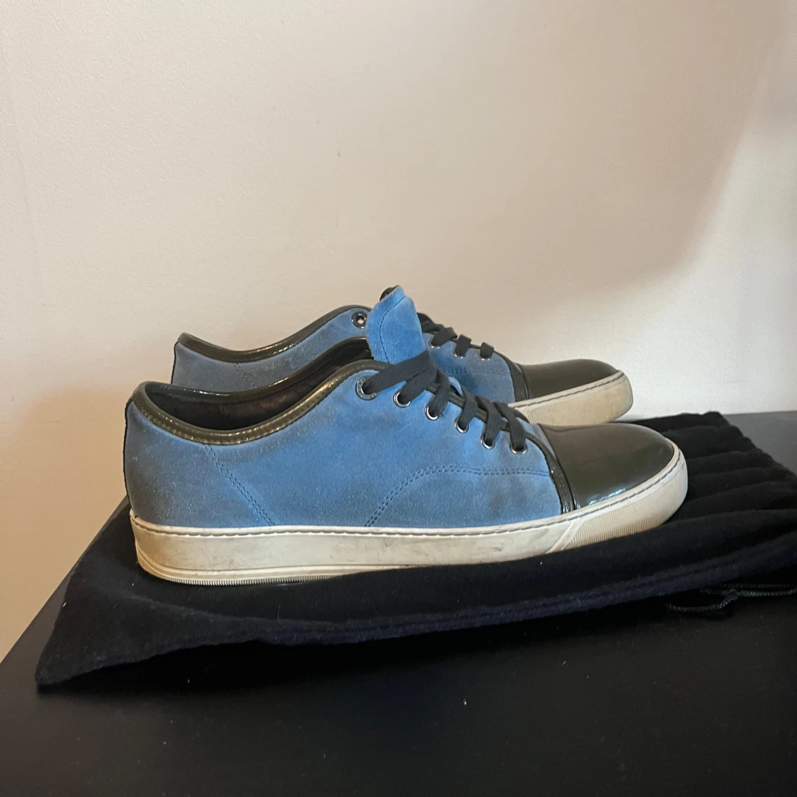 Hej✌️ ja säljer nu dessa trendiga lanvins. Skorna är i en speciell färg som är svåra å få tag i. Skorna är i bra skick men syns att de är lite använda på sulan. Dustbag ingår. Skorna är i storlek 43 men passar upp till 44 Ny pris 4500 Mitt pris 1700