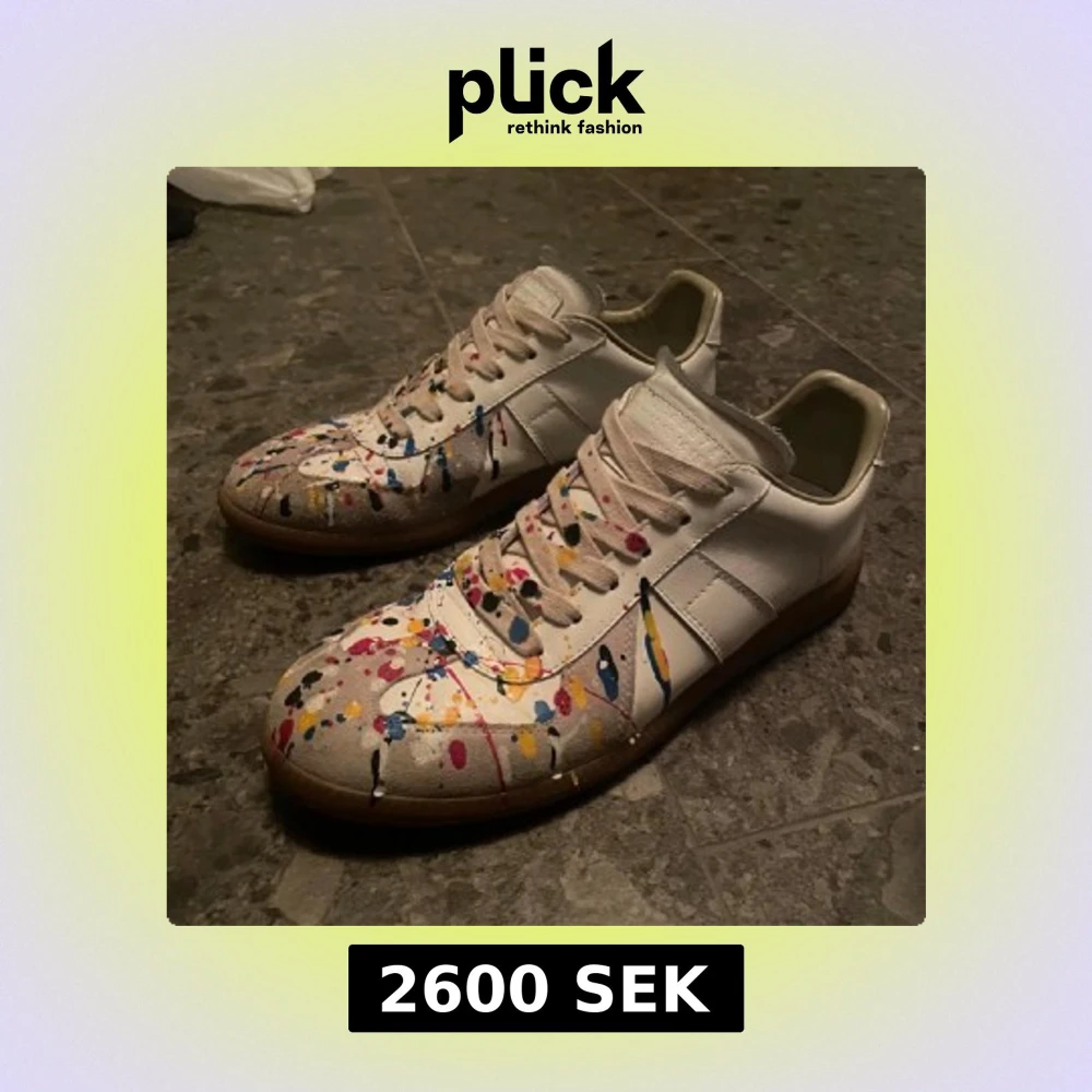 Maison Margiela Gats sneaker. Perfekta för dig som vill sticka ut. Kommer med originalkartong och skoskydd. Skick 8/10 Använd några gånger. Storlek 43 passar även 44. Äkta ✅