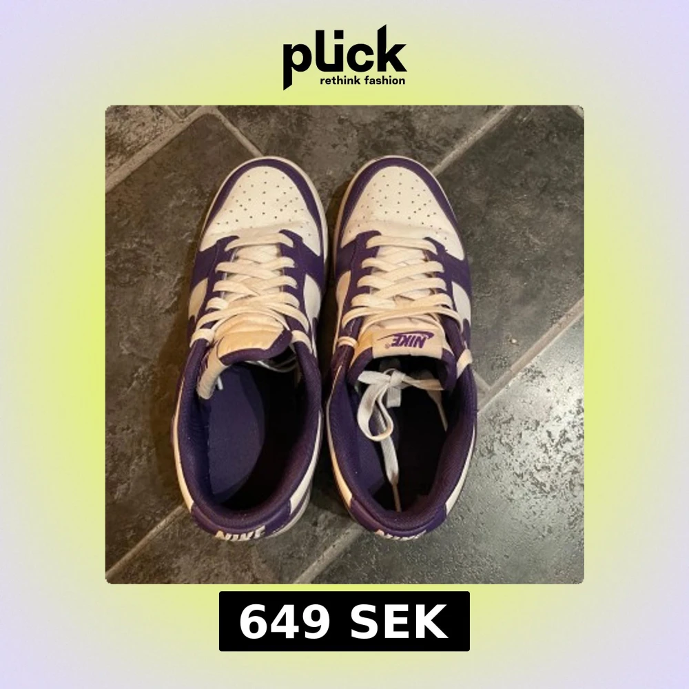Snygga Nike Dunk sneakers i en fräsch kombination av lila och vitt. Skorna har klassisk snörning och en stilren design som passar perfekt för en sportig look.