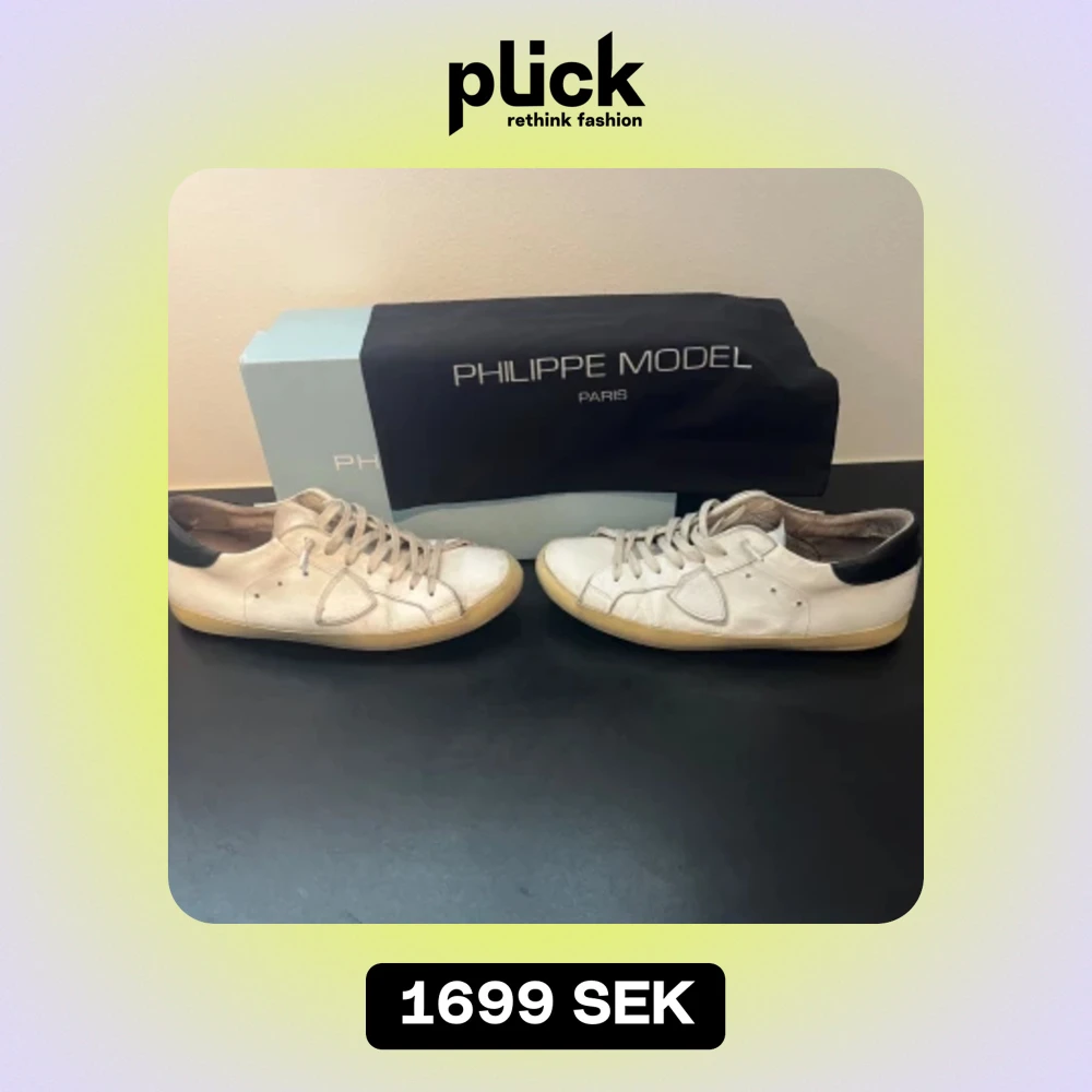 Tja säljer nu mina Philippe models. Skorna är i använt skick de har små defekter (kan ses på bilderna) men inget som märks när man använder de. Är öppen för byten och prisförslag. De är i storlek 42 men passar mig som har 43