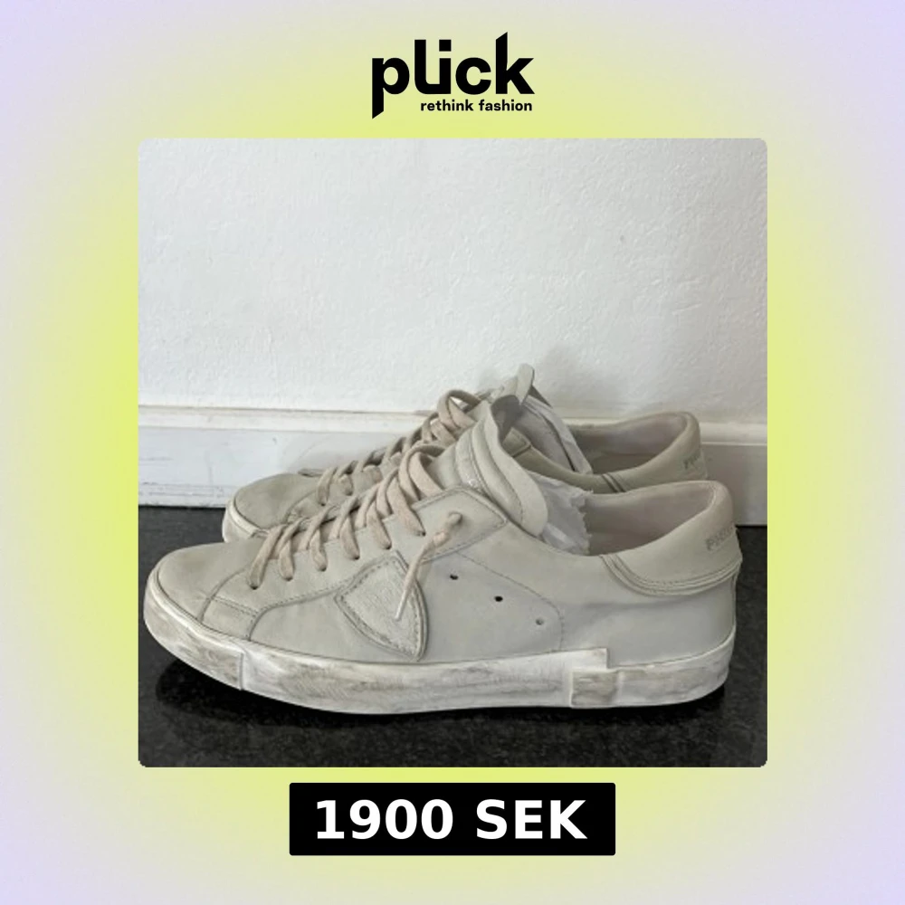 Snygga ljusgrå sneakers från Philippe Model i storlek 41. med klassisk design. Skorna är tillverkade i skinn med diskret logotyp på sidan. Perfekta för dig som gillar stilrena och tidlösa sneakers. Allt og medföljs, inga returer.
