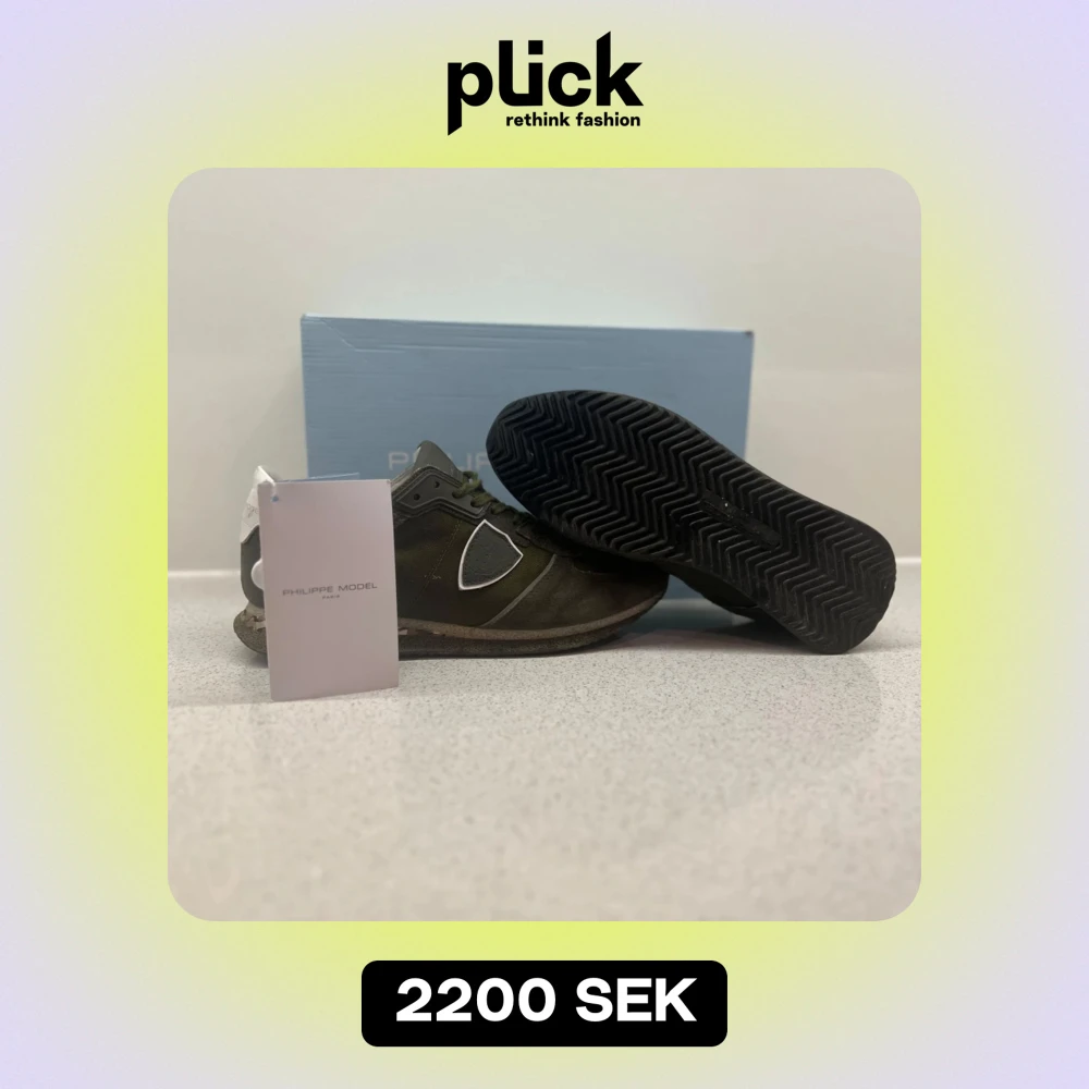 Säljer ett par snygga gröna sneakers från Philippe Model. De har en cool design med vita detaljer och en robust sula som ger bra grepp. Perfekta för både vardag och lite mer avslappnade tillfällen. Skorna är i mycket bra skick och kommer med originalförpackning.