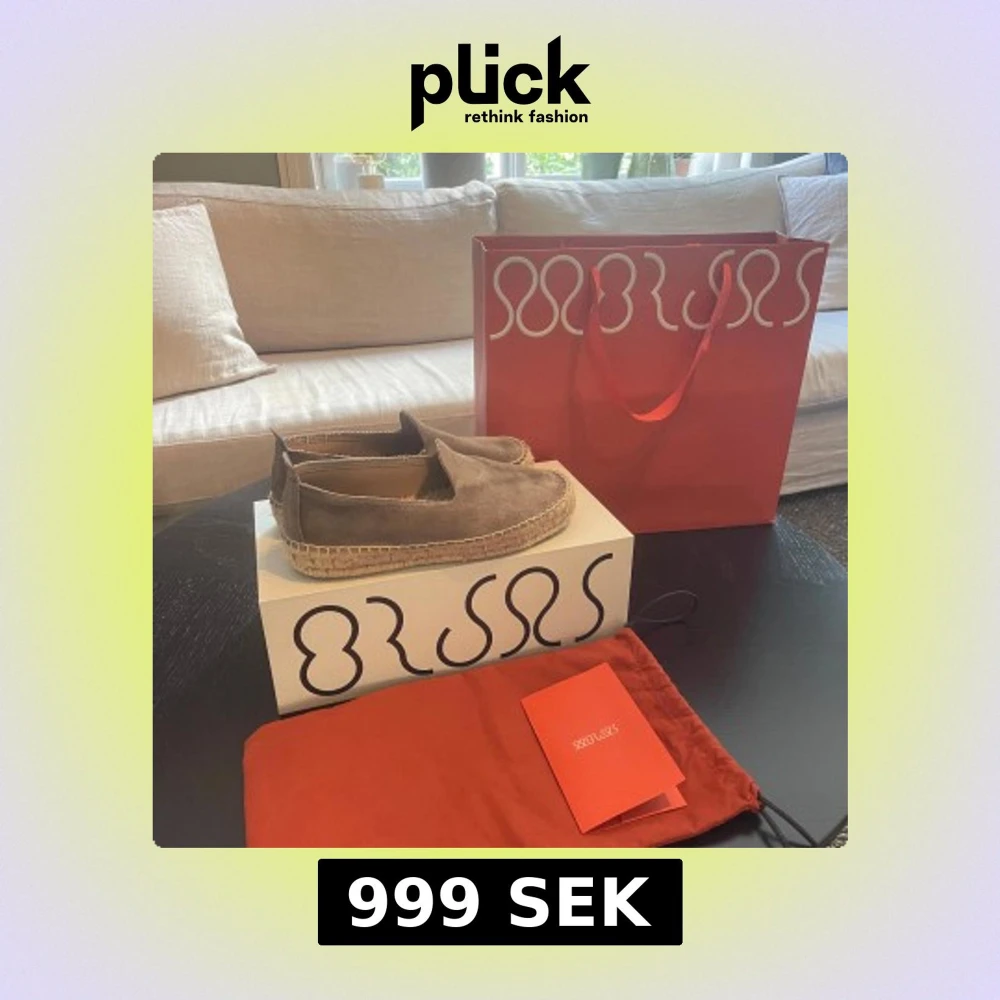 Snygga taupefärgade espadrillos från Morjas i mocka. Skorna har en klassisk rund tå och grov flätad sula i naturmaterial som ger en chill vibe. Perfekta för sommaren och lätta att matcha med både shorts och jeans. Storlek 41 men passar 42!