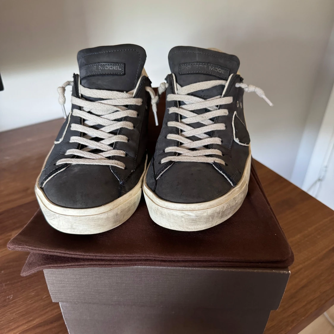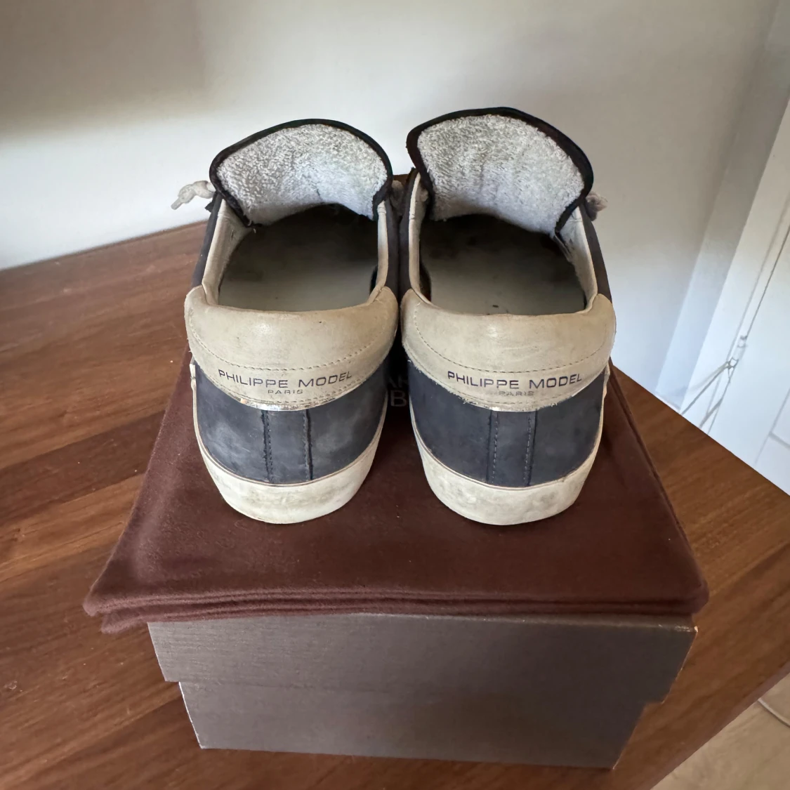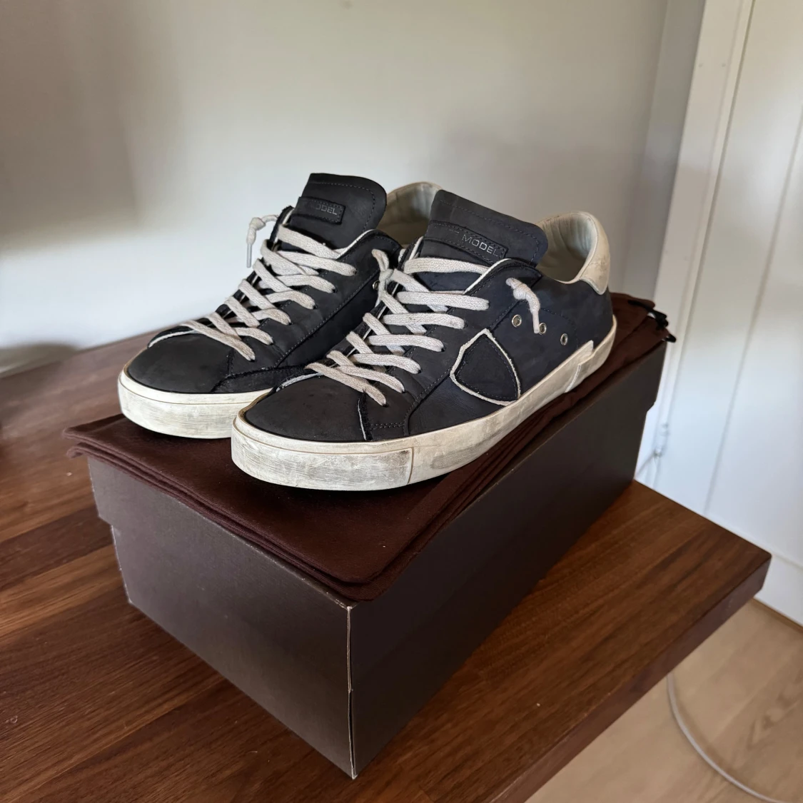 Mörk blå Storlek 42, köpta från Miinto. Aningen smutsiga och slitna, annars inga större defekter. Bara att höra av dig om du har några frågor!