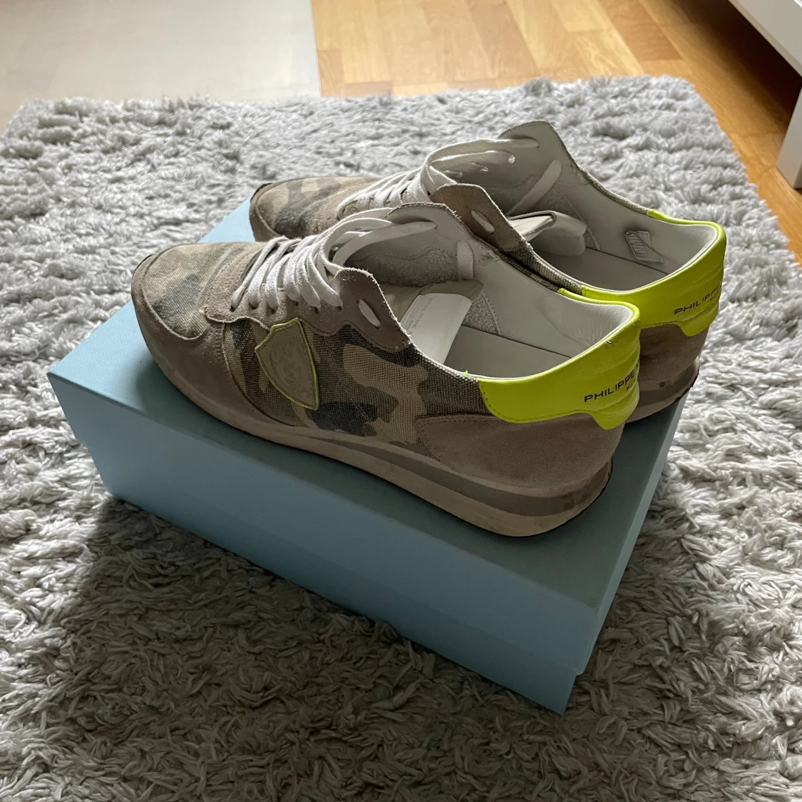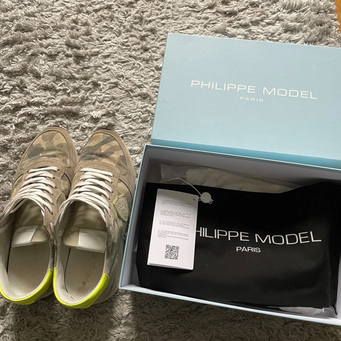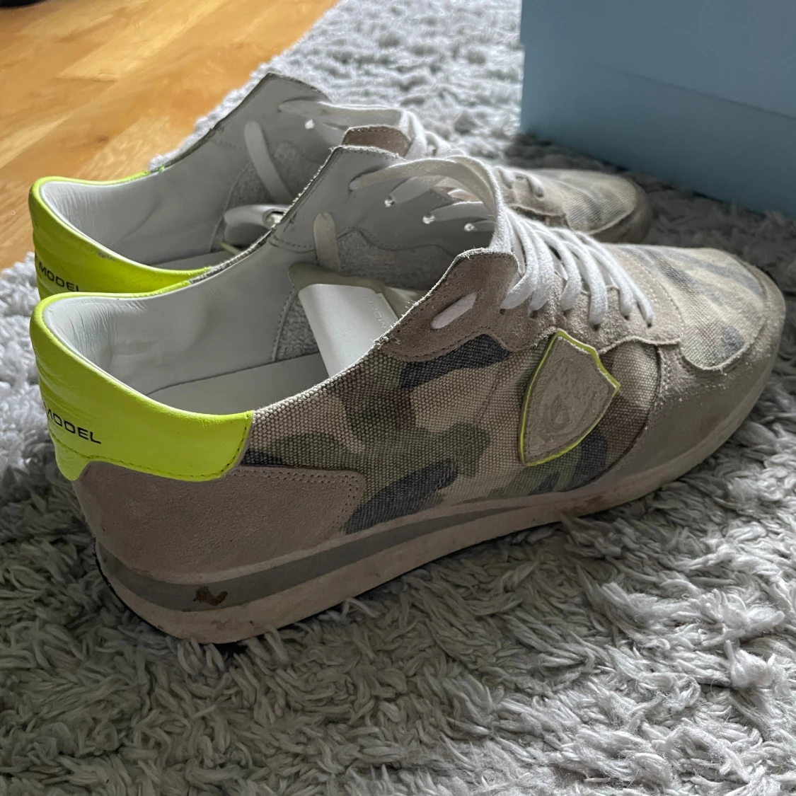 Hej! Säljer nu mina Philippe model trpx eftersom jag inte använder dem längre. Skorna är i ok skick, storlek 44. Allt som är med på bilderna medföljer. Inga returer.