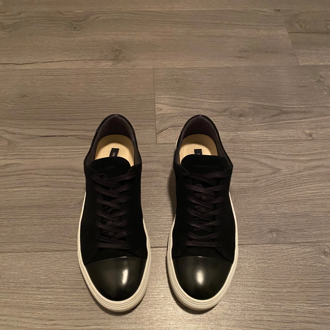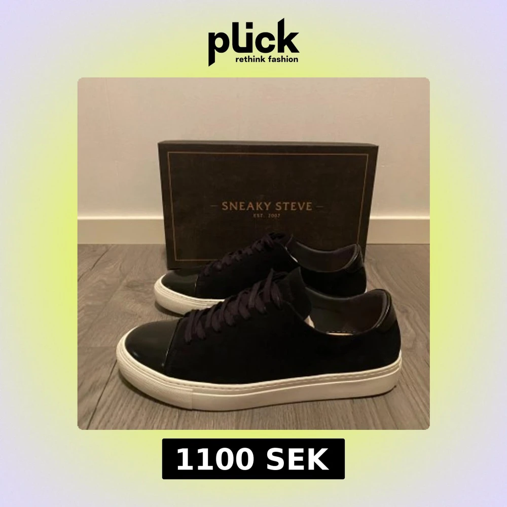 Snygga svarta sneakers från Sneaky Steve med vit sula och snörning. De är i mycket bra skick inga direkta skador eller smuts förutom på undersidan. Skorna är i storlek 42 men ur mitt perspektiv så är de lite små i storleken. Original pris: 1699kr. Skriv om frågor och pris (Kan sänkas vid diskussion)