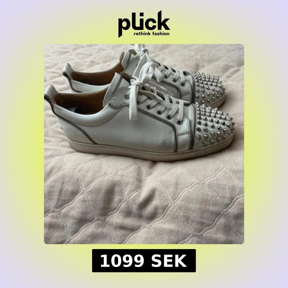 Snygga vita sneakers från Christian Louboutin i skinn med ikonisk röd sula och silverfärgade nitar på tån. Skorna har snörning och en klassisk rund tå. Perfekta för dig som vill sticka ut med en edgy och lyxig stil.