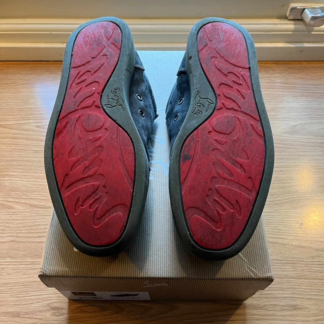 Säljer mina Christian Louboutin skor i använt skick då jag är sugen på ett par andra skor. Skorna är i använt skick då dom har slitage på sulan och inne i skorna men utöver de är dom i bra skick och inget är sönder på dom. Skorna är 100% autentiska och till skorna följer orginalkartongen med och dustbagen. Skorna är i mjuk mocka med klassisk röd sula. Hör av dig vid flera bilder eller funderingar.