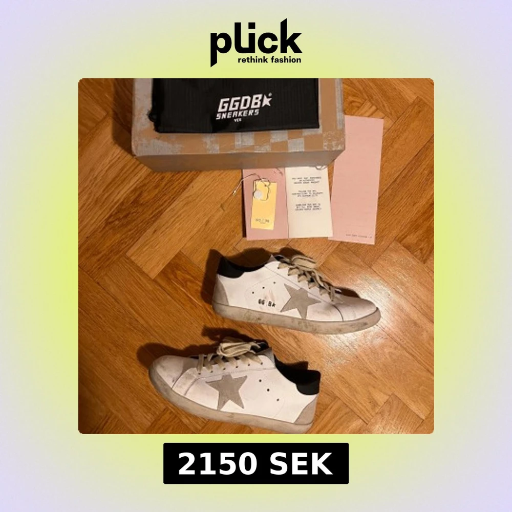 Golden goose skor. Fint skick bara lite smutsigt som går att tvätta bort! Kan tvättas bort vid förfrågan. Tyvärr så har en bokstav åkt av från texten på sidan. Annars är det inget fel me dessa. Fler bilder finns så det är bara att fråga efter det Storlek:42