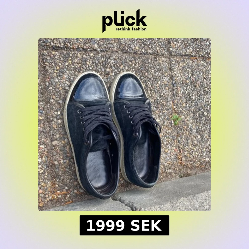 Snygga svarta sneakers från Lanvin med klassisk rund tå och lackad tåhätta. Ovandelen är i mocka och skorna har svarta snören samt vit sula. Perfekta för dig som gillar stilrena och exklusiva detaljer i din vardag.
