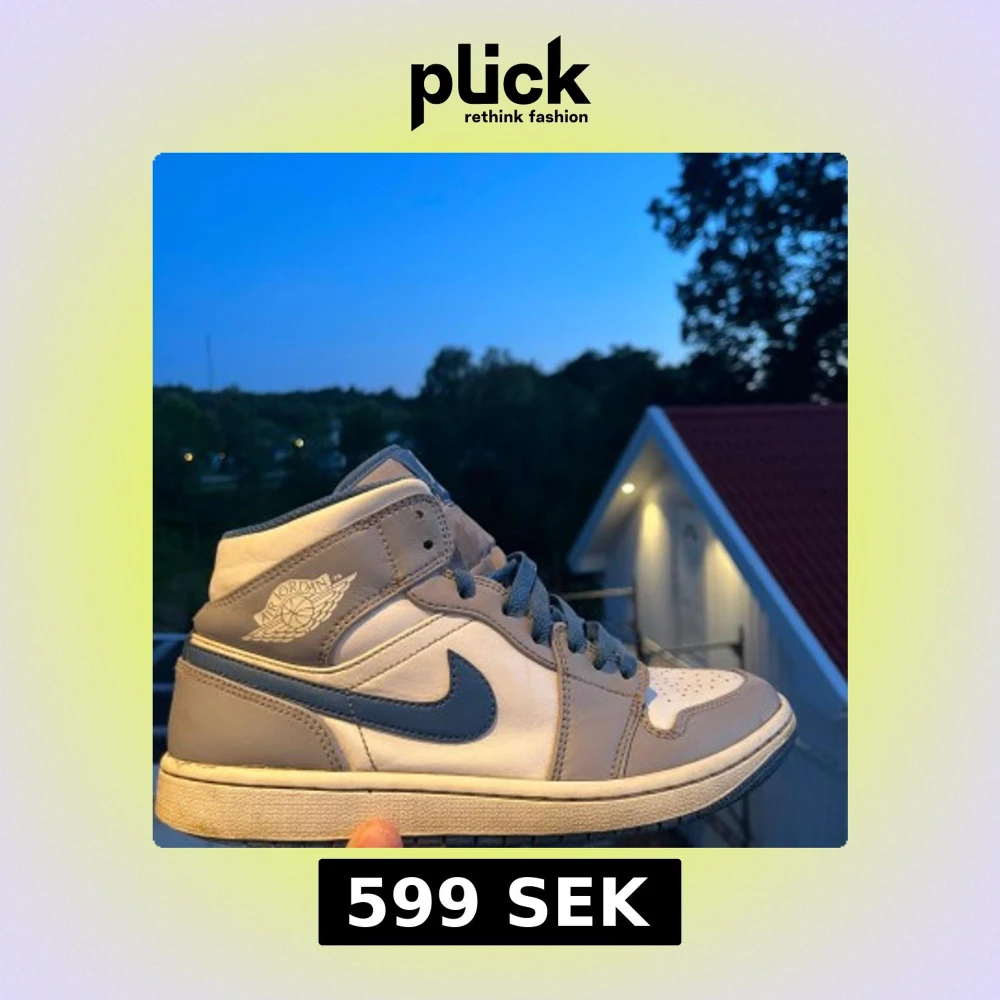 Snygga Nike Air Jordan 1 Mid sneakers i grått och vitt med blå detaljer. mellanhög modell som ger en sportig vibe. Perfekta för dig som gillar streetwear och ikoniska sneakers. Skorna är utslitna på tån av sneakers och hälen på sulan, inga större märken som man märker. Skorna är i storlek 40,5. Tveka inte att fråga om ni vill ha fler bilder eller undrar något!