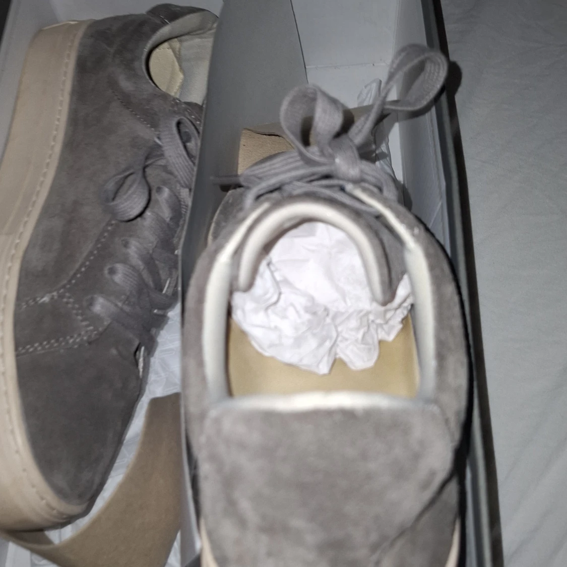 Snygga grå sneakers från Vagabond i mjuk mocka med vita sulor. Skorna har klassisk snörning och en stilren, minimalistisk design som passar till det mesta. Perfekta för dig som gillar en clean och modern look.