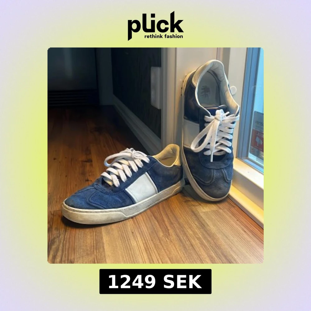 Snygga sneakers från Valentino Garavani i blå mocka och vitt skinn. Skorna har vita snören, rund tå och coola nitar längs sulan för extra edge. Perfekta för dig som vill sticka ut med en lyxig streetstyle-look .skorna saknar 3 nitar men de är inget jag tänker på när skorna sitter på😮💨