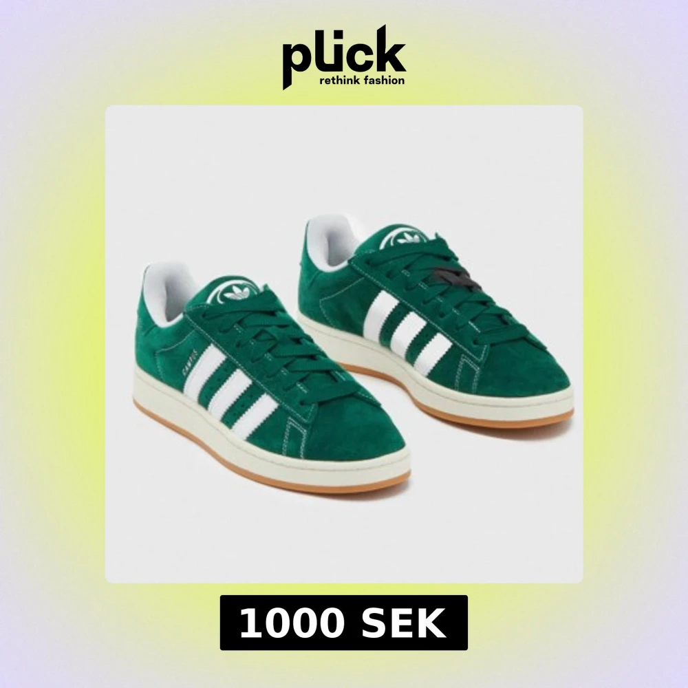 Snygga gröna Adidas Campus sneakers i mocka med de klassiska vita ränderna på sidan. Skorna har används ett par gånger men är i mycket bra skick😊