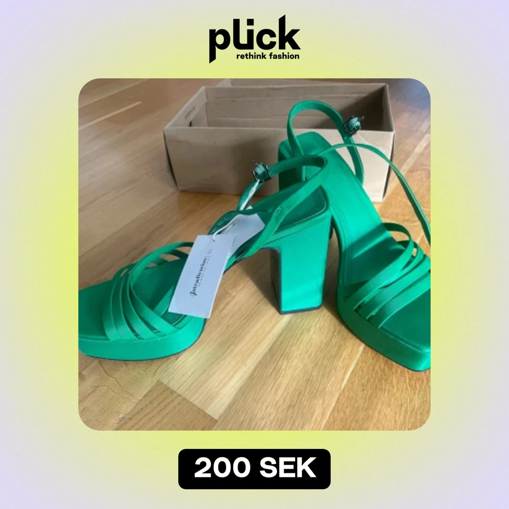 Säljer ett par supertrendiga gröna sandaler från Glamorous. De har en hög klack och flera smala remmar som ger en snygg look. Perfekta för sommarens alla fester! De är helt nya och kommer i originalförpackning.
