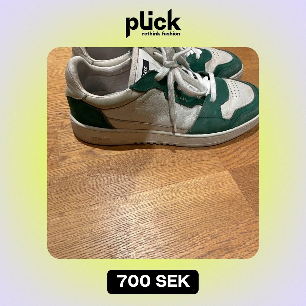 Säljer ett par snygga sneakers från Axel Arigato i grönt och vitt. De har en klassisk design med snörning och är i bra skick. Storlek och passform är normal.